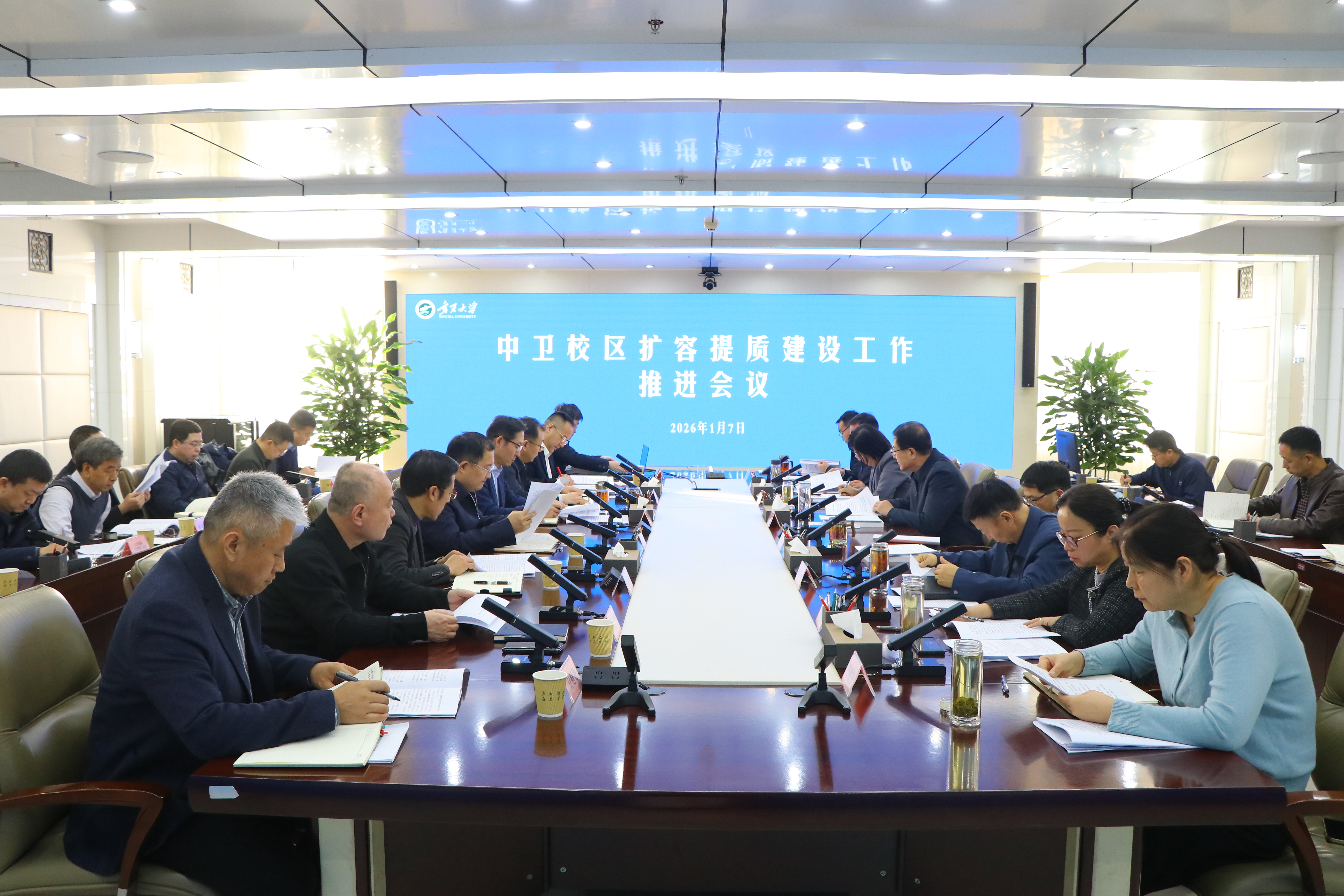 【宁夏大学新闻中心讯 杨雯/文、图】1月7日,学校召开“双一流”学科建设和中卫校区扩容提质建设工作推进会。全体在校校领导、党委常委参加会议,校党委书记王宏伟主持会议。