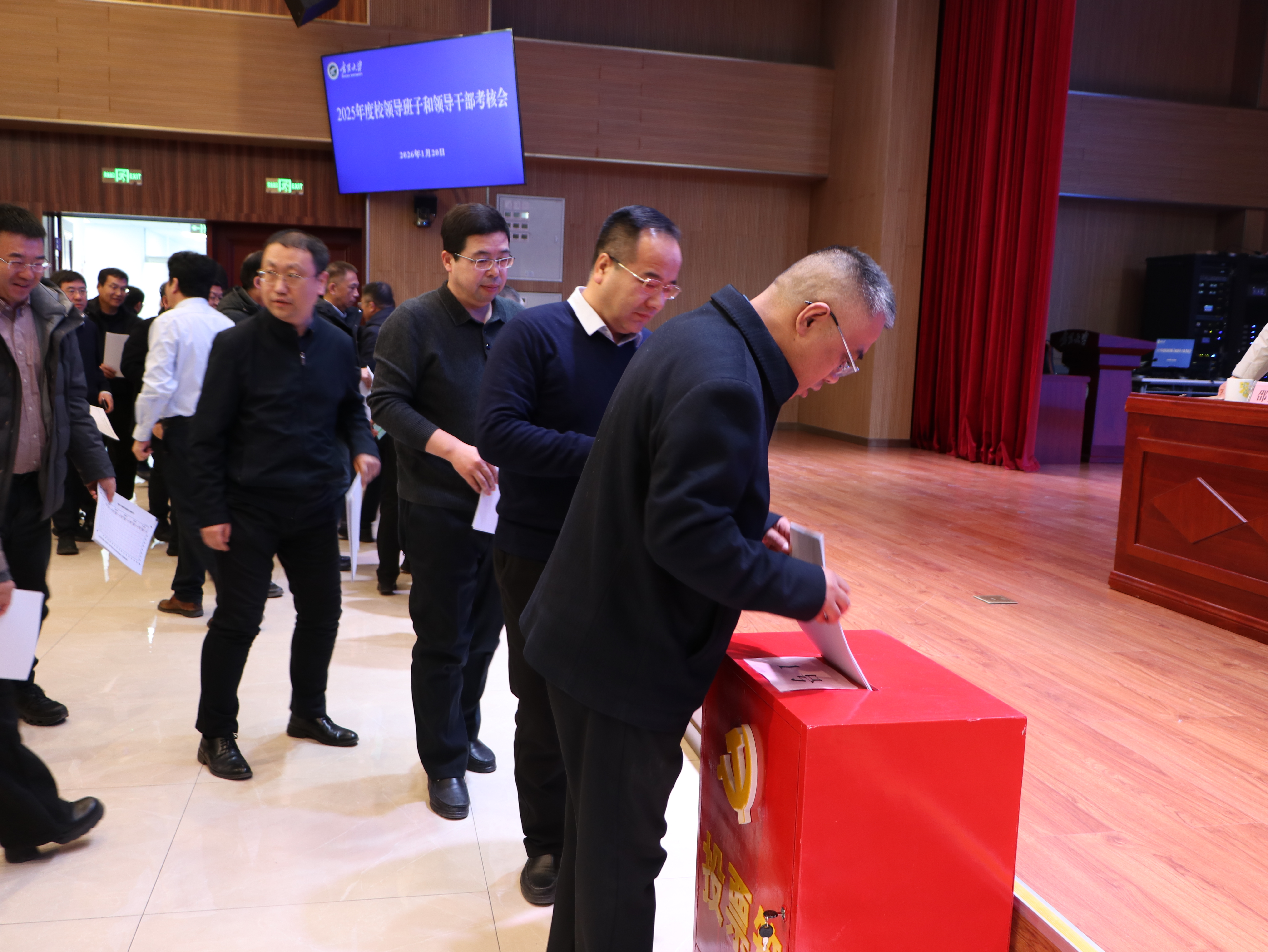 【宁夏大学新闻中心讯 李明花/文、图】1月20日,学校2025年度校领导班子和领导干部考核会在贺兰山校区笃行楼三楼报告厅举行,自治区党委组织部干部四处处长邵力蓉出席考核会。校党委副书记、校长彭志科主持会议。