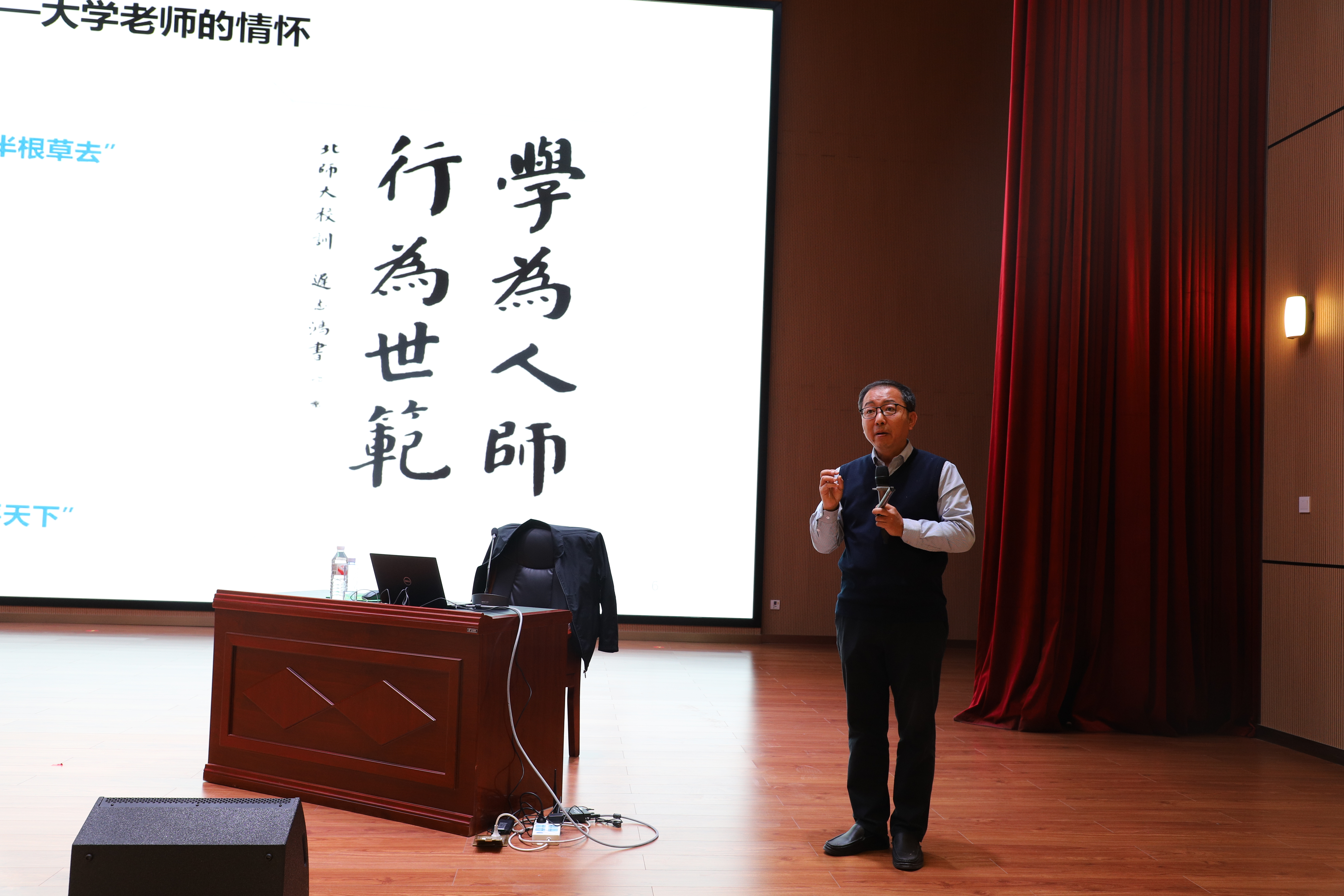 黄凌风以“学为人师,行为世范”为引,深情阐述了教师作为“催化剂”的角色定位,分享体系化专业思政建设经验,展现了课程思政“信手拈来”的教学智慧,用鲜活的案例、务实的经验和真挚的情怀,聚焦“心中有爱 眼里有光——做一名有情怀的大学老师”核心议题,为青年教师带来了一堂生动的师德师风与育人能力提升课。