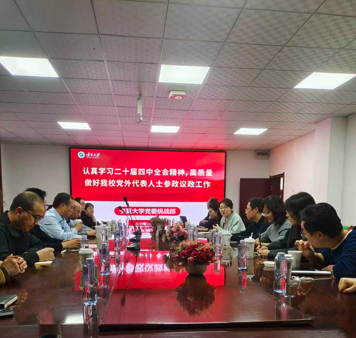 活动中,党外代表人士参观了党外代表人士工作室、政协委员会客室,围绕我校党外代表人士参政议政的工作成果,展开热烈探讨和交流。金忠杰教授受邀作了题为“认真学习党的二十届四中全会精神,高质量做好党外代表人士参政议政工作”专题讲座,从党的二十届四中全会的意义、定位、内容等,尤其对国家“十五五”发展的顶层设计与战略擘画,做了学习和思考分享,并从党外人士参政议政的立意、定位、心得等角度作了深入交流。