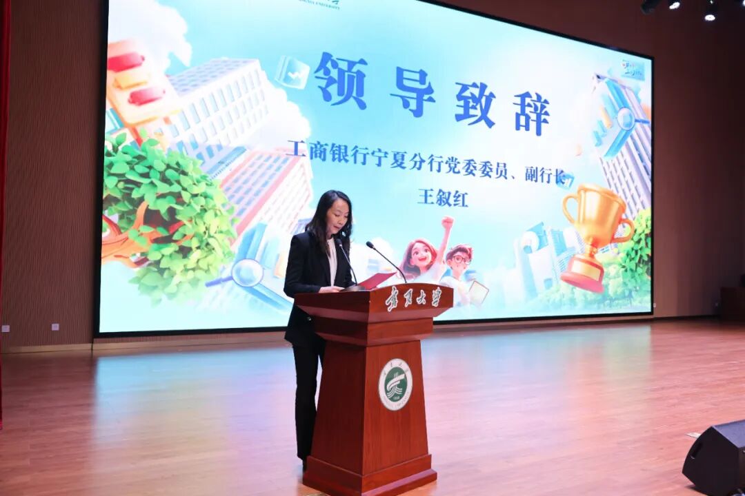中国工商银行宁夏分行党委委员、副行长王叙红在致辞中表示,工商银行宁夏分行始终致力于深化银校合作,积极构建产教融合新范式,携手宁夏大学通过赛事平台培养了大批兼具金融素养与科技能力的复合型人才。在数字中国的浪潮中,工商银行宁夏分行将持续谋创新、强科技,促进科技成果转化,助力优秀项目不断突破,进军全国总决赛,为推动高质量发展汇聚金融与教育的智慧力量。