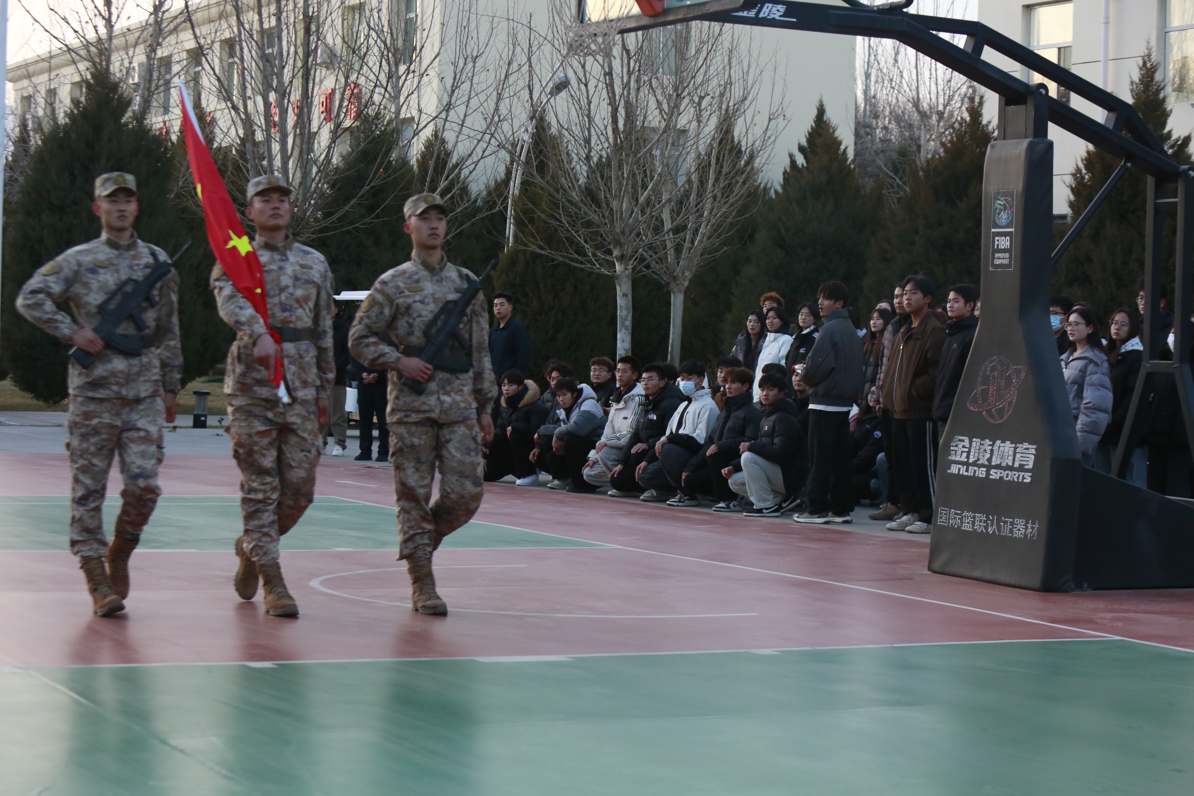 活动现场,部队官兵为师生们进行了升旗仪式动作展示。从护旗、擎旗到抛旗、敬礼,每一个动作都刚劲有力、整齐划一,充分展现了新时代革命军人的过硬作风。官兵们还手把手为国旗护卫队队员示范动作要领,耐心讲解队列纪律和仪仗规范,让同学们对“升旗”这一神圣职责有了更深刻的理解。