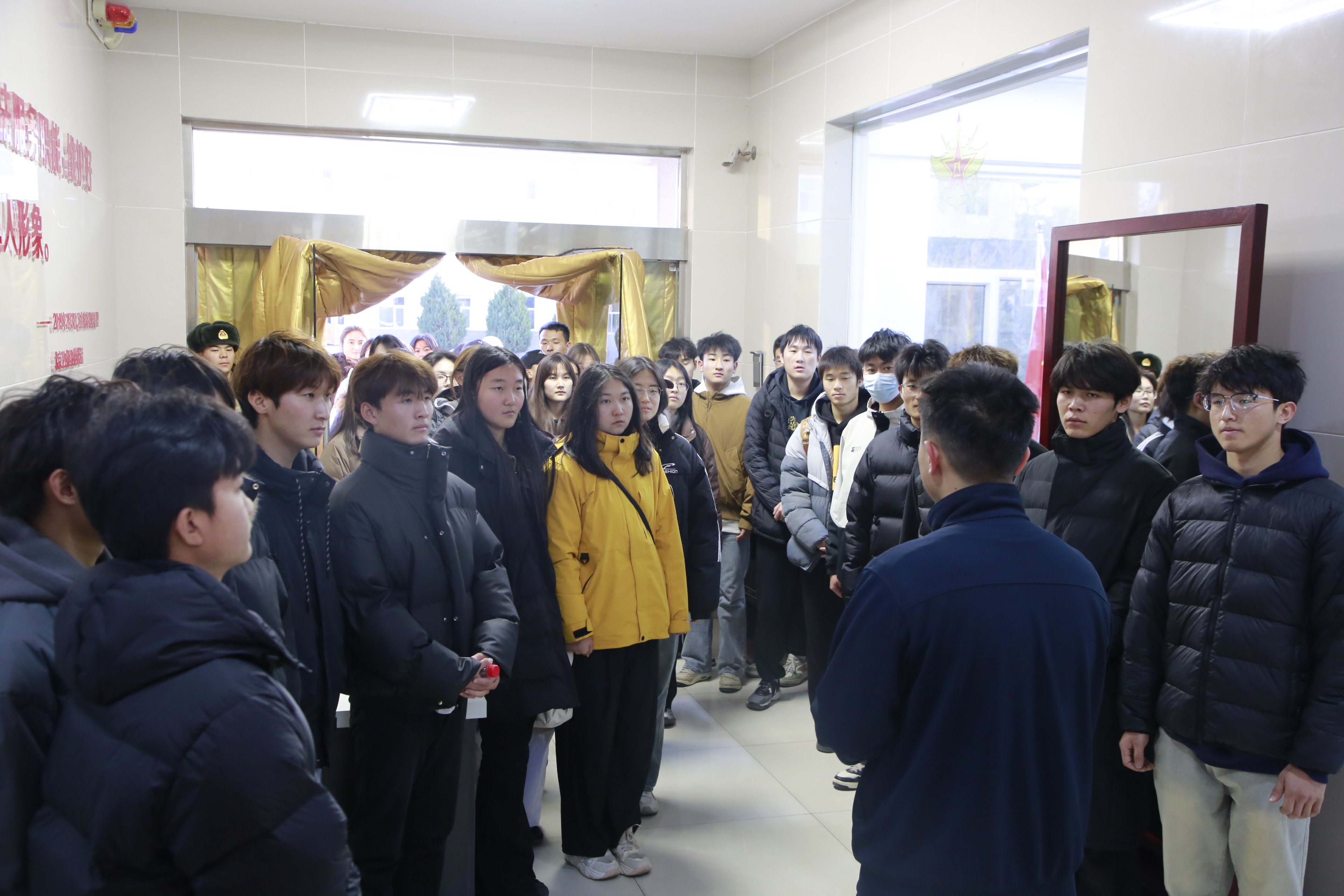 师生们还参观了部队正规化建设。在营区宿舍,棱角分明的“豆腐块”军被、时时处处的窗明几净,令同学们赞叹不已;在荣誉室,一面面锦旗、一张张奖状背后承载的铁血荣光,让青年学子深受震撼;在装备展示区,同学们近距离了解国防现代化建设成就,自豪感油然而生。
