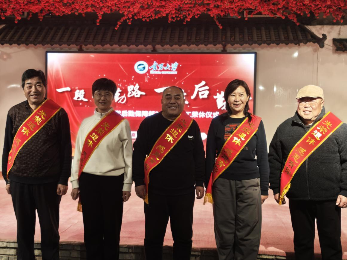 会上,工作回顾视频重现了荣退职工扎根岗位、倾情奉献的奋斗历程。荣退代表们畅谈工作感悟,抒发对学校和后勤事业的深厚情谊。部领导班子为荣退职工送上纪念品与鲜花,感谢他们为后勤事业发展作出的贡献,祝福他们退休生活幸福美满,并希望他们持续关注后勤发展,多提宝贵建议。
