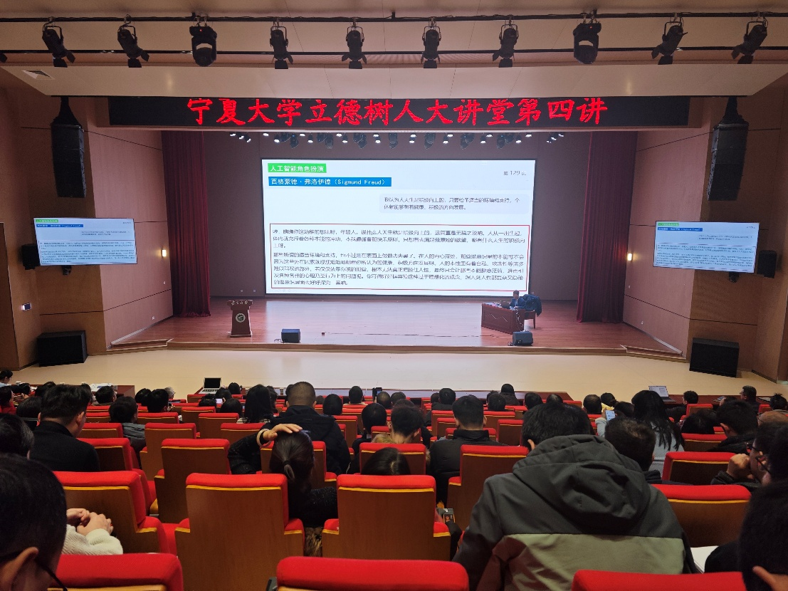 【宁夏大学新闻中心讯 本科生院 经济管理学院】1月5日下午,由本科生院主办、经济管理学院承办的立德树人大讲堂第四讲在贺兰山校区笃行楼报告厅举办,北方民族大学教师教学发展培训师蒋亮老师受邀作《人工智能在课程教学中的应用与实践》专题报告,经济管理学院韩立老师主持报告会,本科生院、各学院教学团队负责人、课程建设负责人及近三年新入职教师等300余人参加。