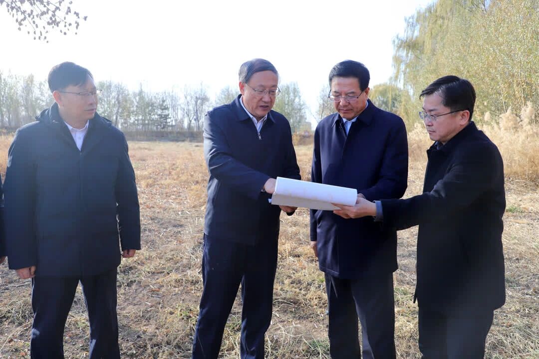 李邑飞在宁夏大学中卫校区,实地察看建设用地供给情况。宁夏日报记者 党硕 中卫市新闻传媒中心记者 杨雪/图