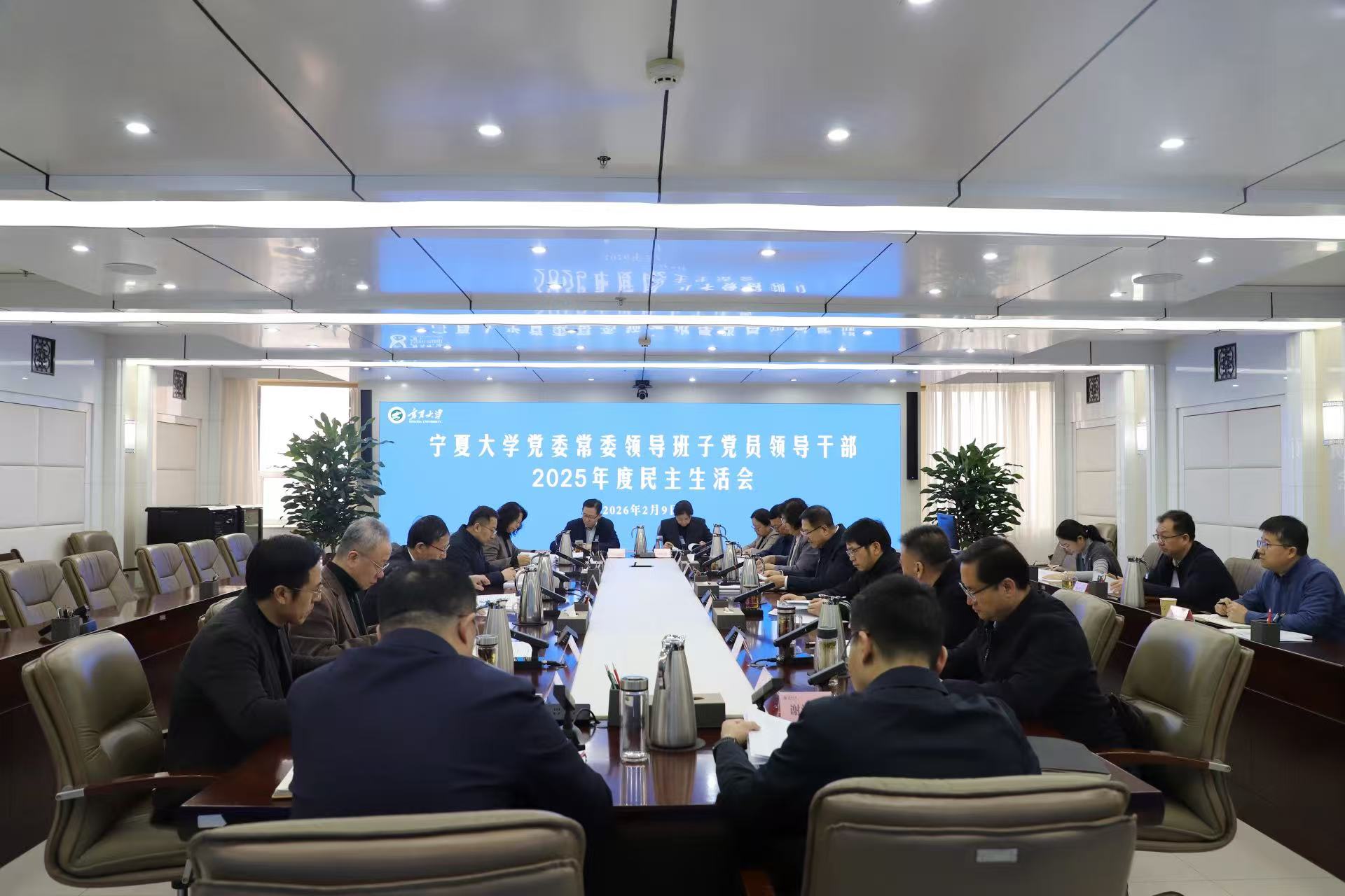 【宁夏大学新闻中心讯 王文娣/文、图】按照党中央和自治区党委统一部署,2月9日,我校在德勤楼11楼会议室召开党委常委领导班子党员领导干部2025年度民主生活会。自治区纪委监委二级巡视员、自治区党委第六督导组组长吴永亮,自治区党委组织部干部四处副处长、三级调研员杨金云到会指导。校党委书记王宏伟主持会议。