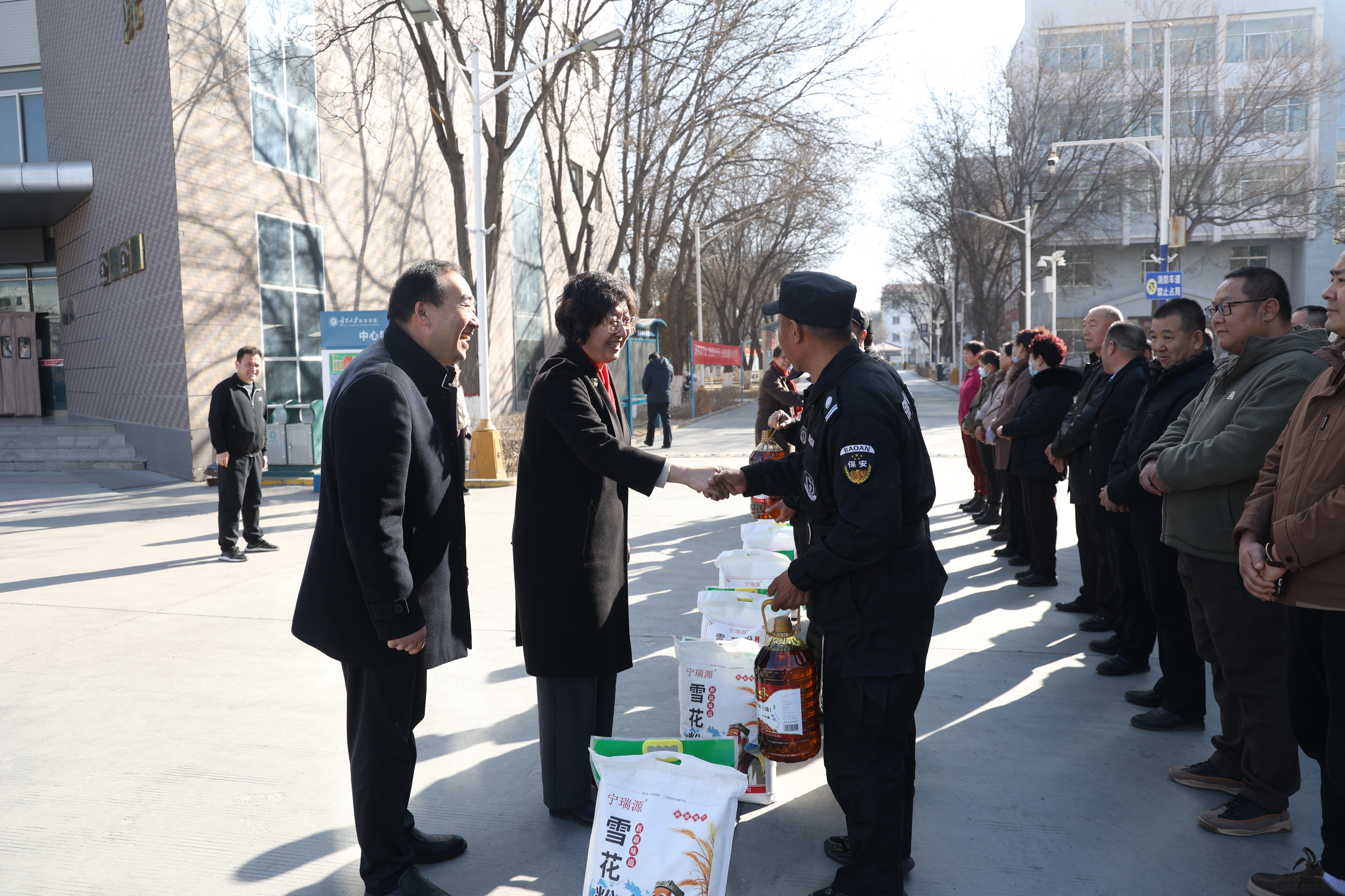 校领导一行先后前往中卫校区、怀远校区、贺兰山校区、文萃校区、朔方校区、金凤校区、新华学院和附属中学,深入校园保卫、勤务保障、水电暖运维、学生公寓管理、保洁环卫、食堂服务、物业保障等工作一线,与在岗职工亲切握手、暖心交谈,详细了解大家的工作生活、值班值守、后勤保障等情况,对大家节日期间坚守岗位、履职尽责的担当精神表示高度肯定,并为职工们送上新春祝福与学校精心准备的慰问品。
