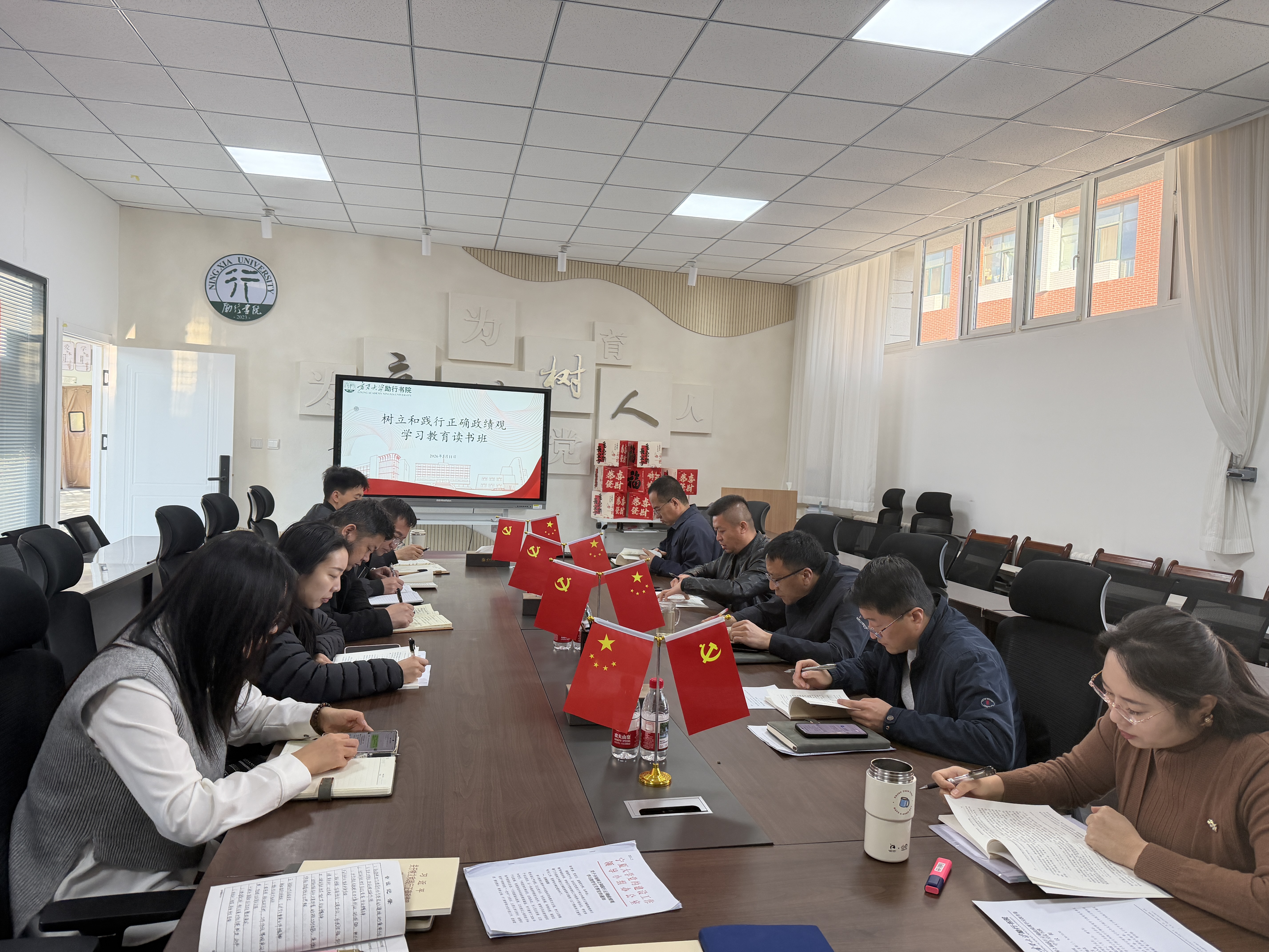 【宁夏大学新闻中心讯 冯禹君、王文娣/文 张景/图】3月19日,我校举行树立和践行正确政绩观学习教育读书班暨党委理论学习中心组专题学习会开班式,深学细悟笃行习近平总书记关于树立和践行正确政绩观的重要论述和党中央、自治区党委部署要求,安排部署读书班学习任务,明确学习要求,引导全校党员以学铸魂、以学增智、以学正风、以学促干,切实把学习成果转化为推动学校高质量发展的实际成效。校党委书记王宏伟主持开班式。