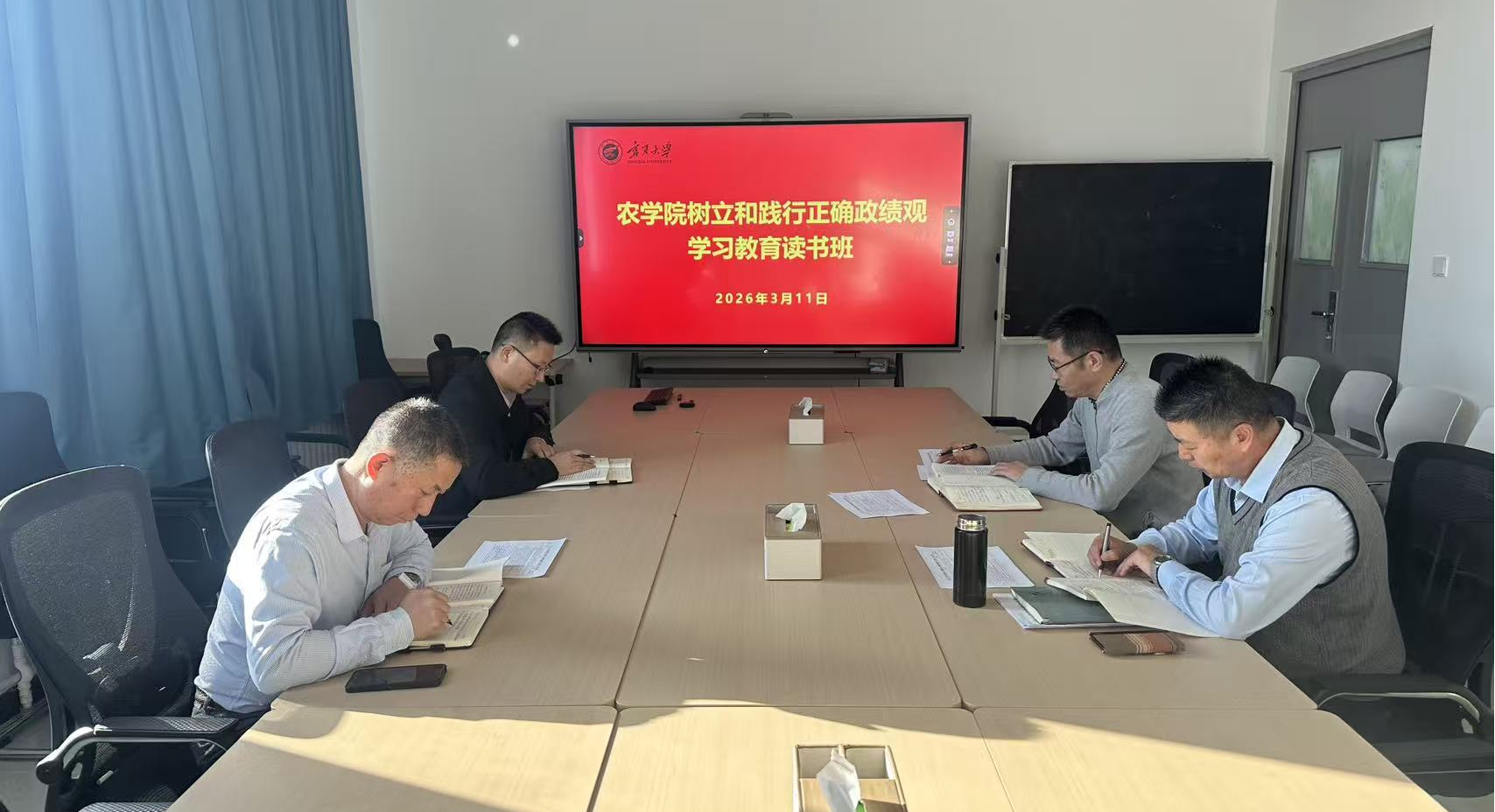 树立和践行正确政绩观学习教育开展以来,我校各二级单位党组织迅速启动部署学习教育各项工作,分别举办本单位学习教育读书班,紧扣主题、精心组织,通过集中学习、交流研讨、领学导读、警示教育等多种形式,深刻领会正确政绩观的核心要义和实践要求,切实把思想和行动统一到学校党委决策部署上来,以学习教育成效助力学校“十五五”开好局、起好步。