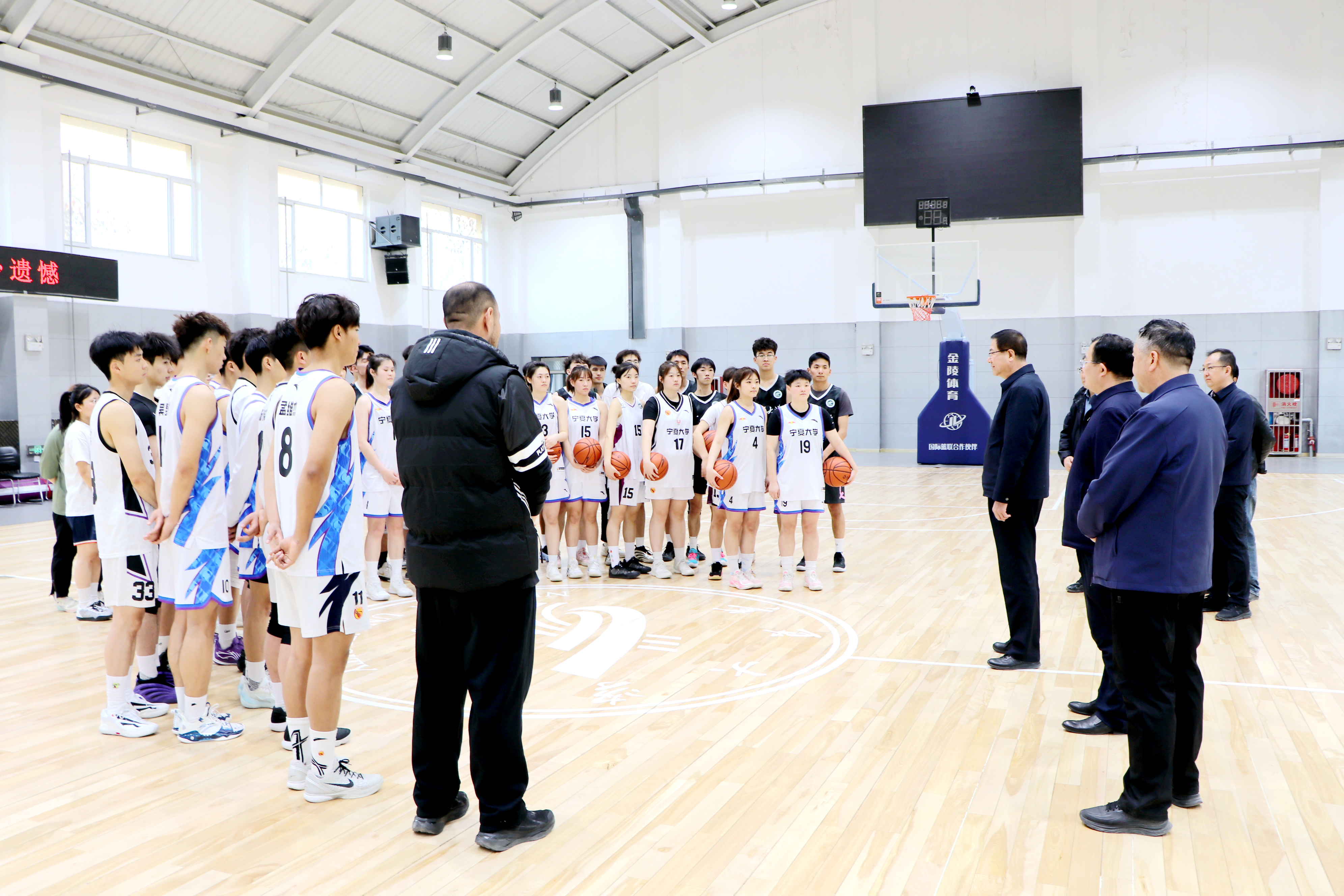 王宏伟表示,此次我校同时派出四支篮球队征战西北赛区,实现了宁夏高校在单校组队规模与数量上的历史性突破。这一成绩是学校几十年来持续深耕、不懈拼搏的成果,既是学校体育工作高质量发展的有力见证,也是师生共同努力、日复一日刻苦训练的结晶,充分展现了学校教书育人的扎实成效,彰显了宁大学子吃苦耐劳、敢于拼搏、勇于奋斗的精神风貌。