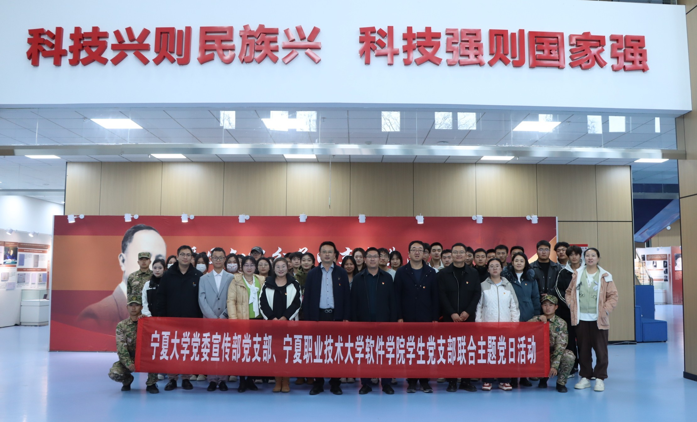 【宁夏大学新闻中心讯 党委宣传部】为深入学习贯彻党的二十届四中全会精神,大力弘扬科学家精神,扎实推进铸牢中华民族共同体意识教育走深走实,11月14日,宁夏职业技术大学软件学院组织学生党员及团学干部来校,与宁夏大学党委宣传部党支部联合开展主题党日活动。学校党委宣传部党支部书记、副部长朱晓明,副部长徐静及全体党员参加活动。