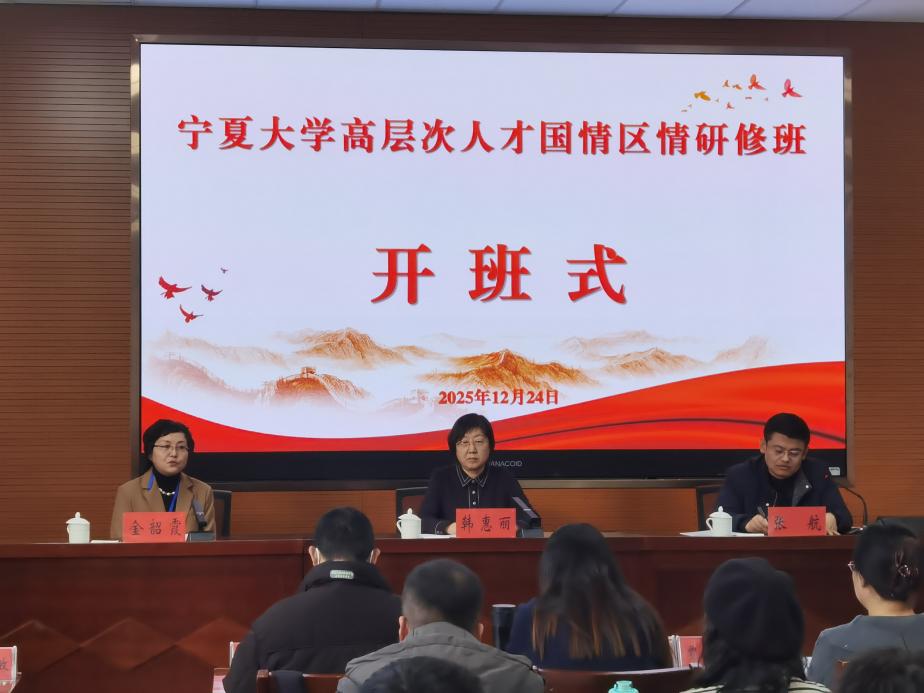 【宁夏大学新闻中心讯 人力资源部】为进一步厚植爱党爱国情怀,以教育家精神铸魂强师,增强爱岗敬业的事业心与责任感,持续推进高素质专业化教师队伍建设,12月24日至26日,我校依托自治区党校(宁夏行政学院)举办了2025年高层次人才国情区情研修班。50名高层次人才代表参训,校党委副书记韩惠丽出席开班式并作开班动员讲话。