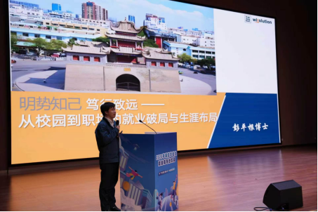 活动中,资深人才管理专家彭平根老师以《明势知己笃行致远》为题,从“知己”“知彼”“知行”三个层次出发,引导学生发掘自身优势、洞察职场趋势,并将认知转化为行动。