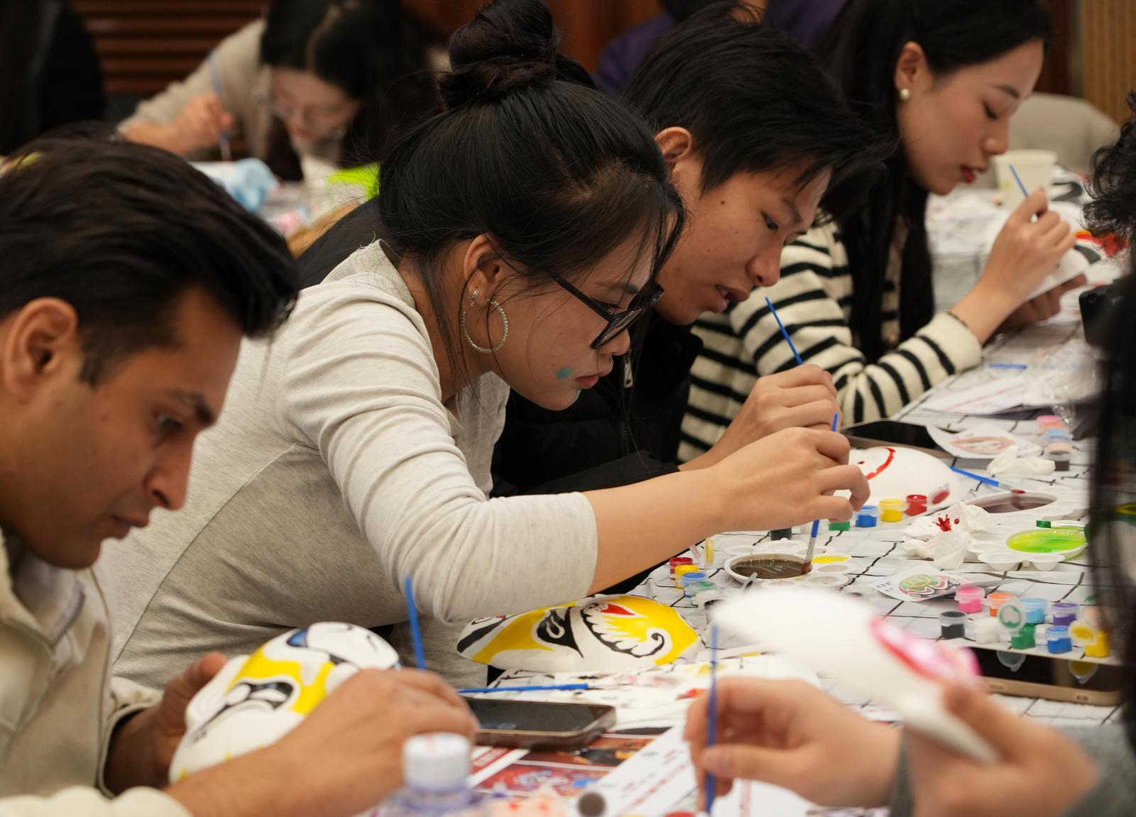 外籍师生通过脸谱绘画沉浸式体验京剧魅力。