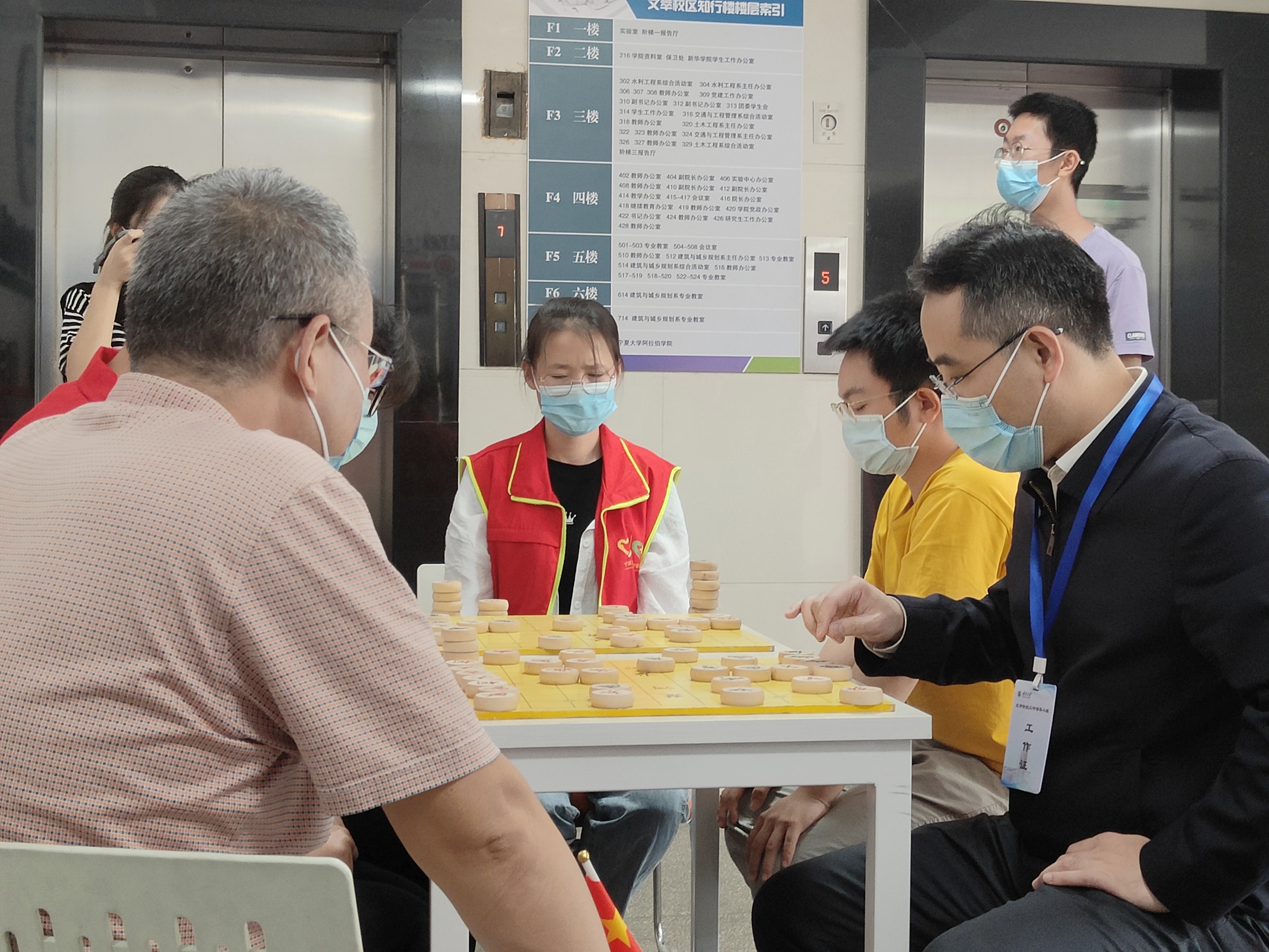 【宁夏大学新闻中心讯 土木与水利工程学院】为了丰富同学们的课余生活,培养同学们对棋类竞技文化活动的热情,加强各专业之间的交流合作,土木与水利工程学院志愿者工作部与涵博棋艺社于国庆节期间举行了“‘疫’路前行,棋迎国庆”棋类交流赛。校党委常委、副校长史金龙,校团委书记肖功国,校团委副书记秦泗海及学院党委书记陈晓敏,副院长李王成、徐利岗参加。