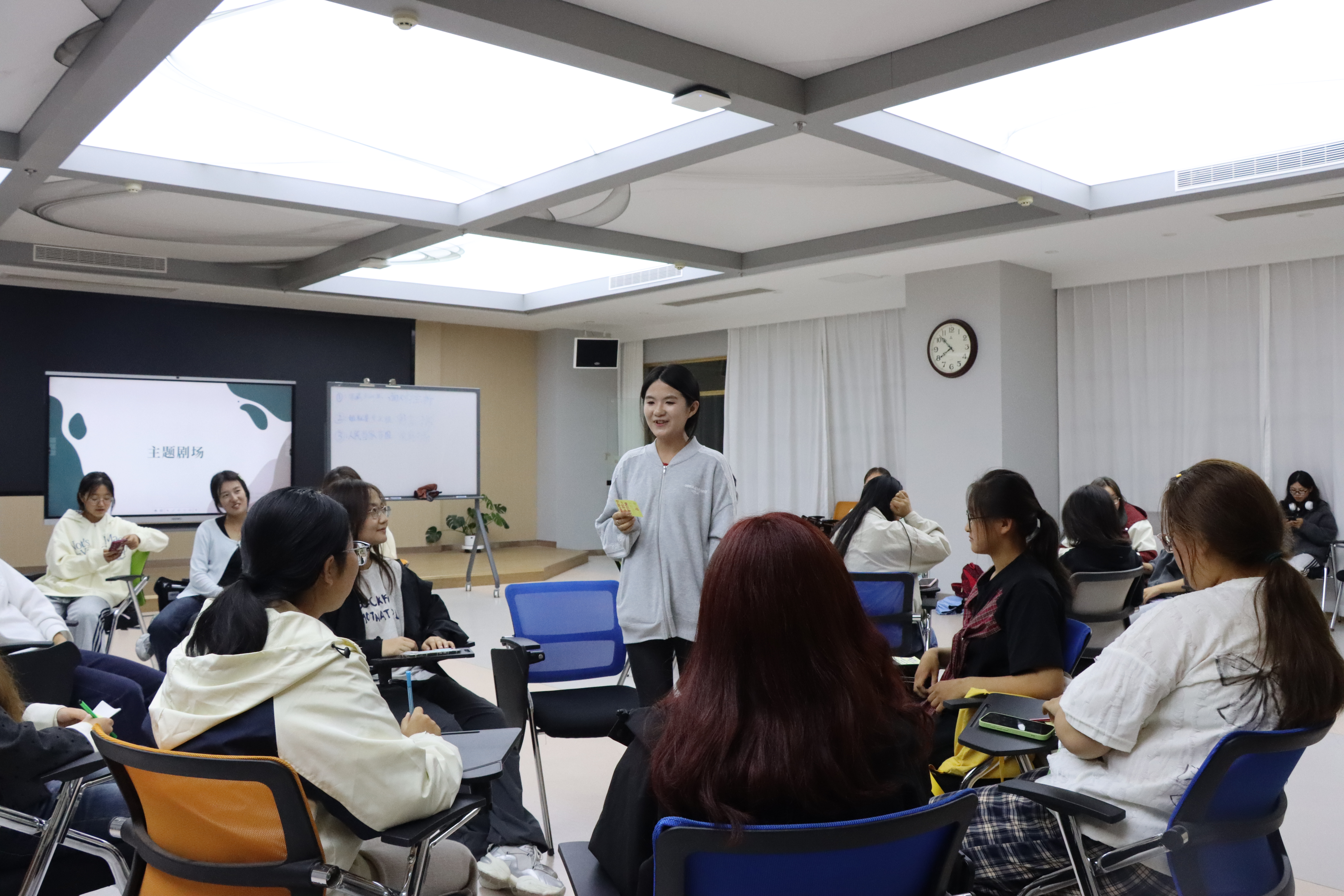活动紧扣“消除隔阂,拉近距离”的核心目标,通过四个互动环节让新生从初始的腼腆拘谨,逐步升温至热烈活跃,大家敞开心扉、积极参与,在欢声笑语中结识伙伴,畅谈大学理想与规划。此外,朋辈引领是本次活动的一大亮点,由应用心理学专业的学生担任心理服务志愿者并化身“校园引路人”,结合自身经历,分享学习方法、校园资源使用技巧等实用内容,为新生答疑解惑,让温暖陪伴贯穿活动全程。