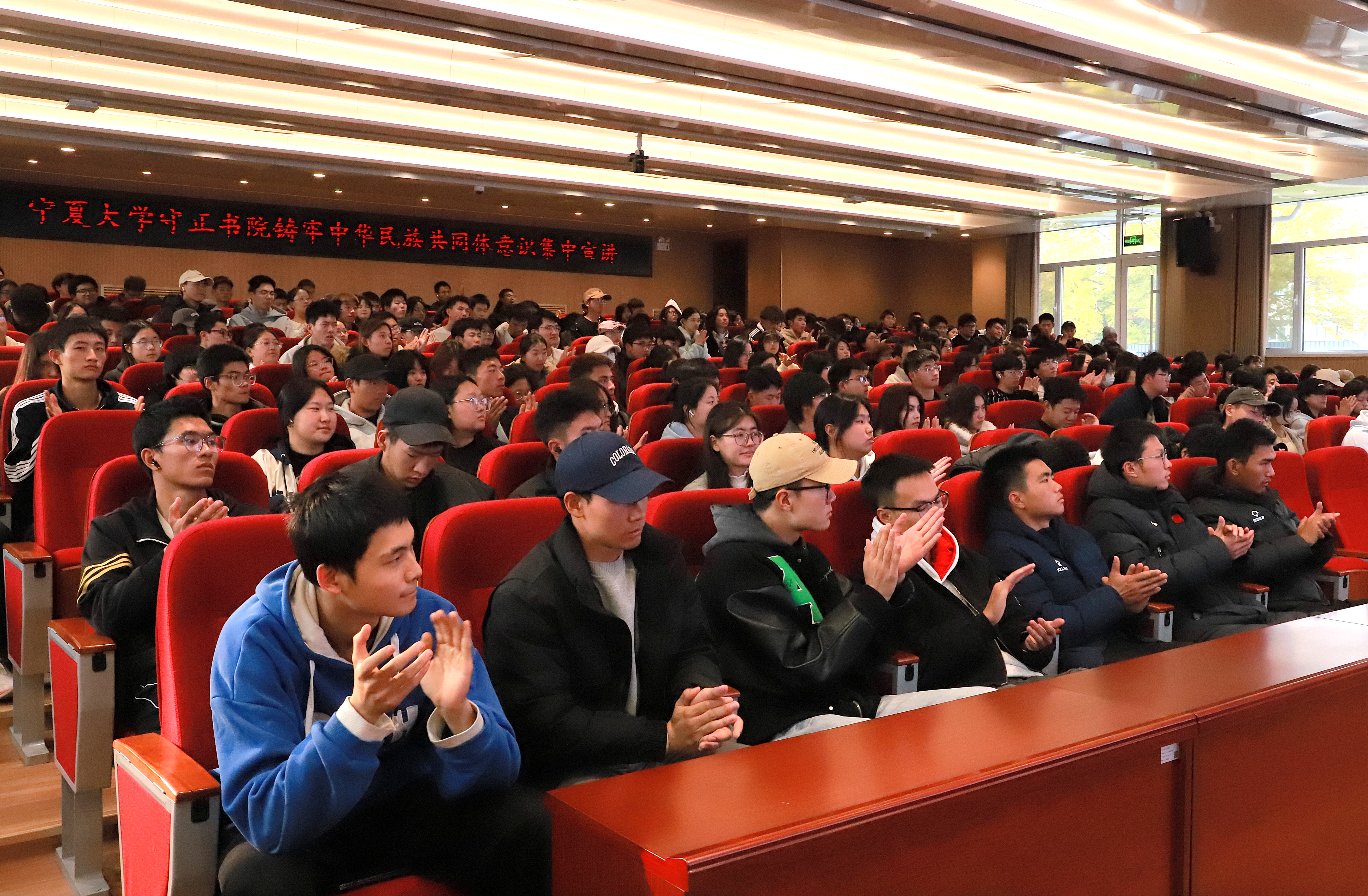 【宁夏大学新闻中心讯 守正书院】为深入学习贯彻习近平总书记关于加强和改进民族工作的重要思想,全面落实自治区第42个民族团结进步月部署工作,10月22日,守正书院在怀远校区怀远楼二楼报告厅开展“铸牢中华民族共同体意识” 集中宣讲活动。本次专题宣讲邀请学校铸牢中华民族共同体意识宣讲团成员杨浣教授为书院2025级新生讲授题为“坚定理想信念厚植家国情怀——树立正确的中华民族历史观”的专题报告。