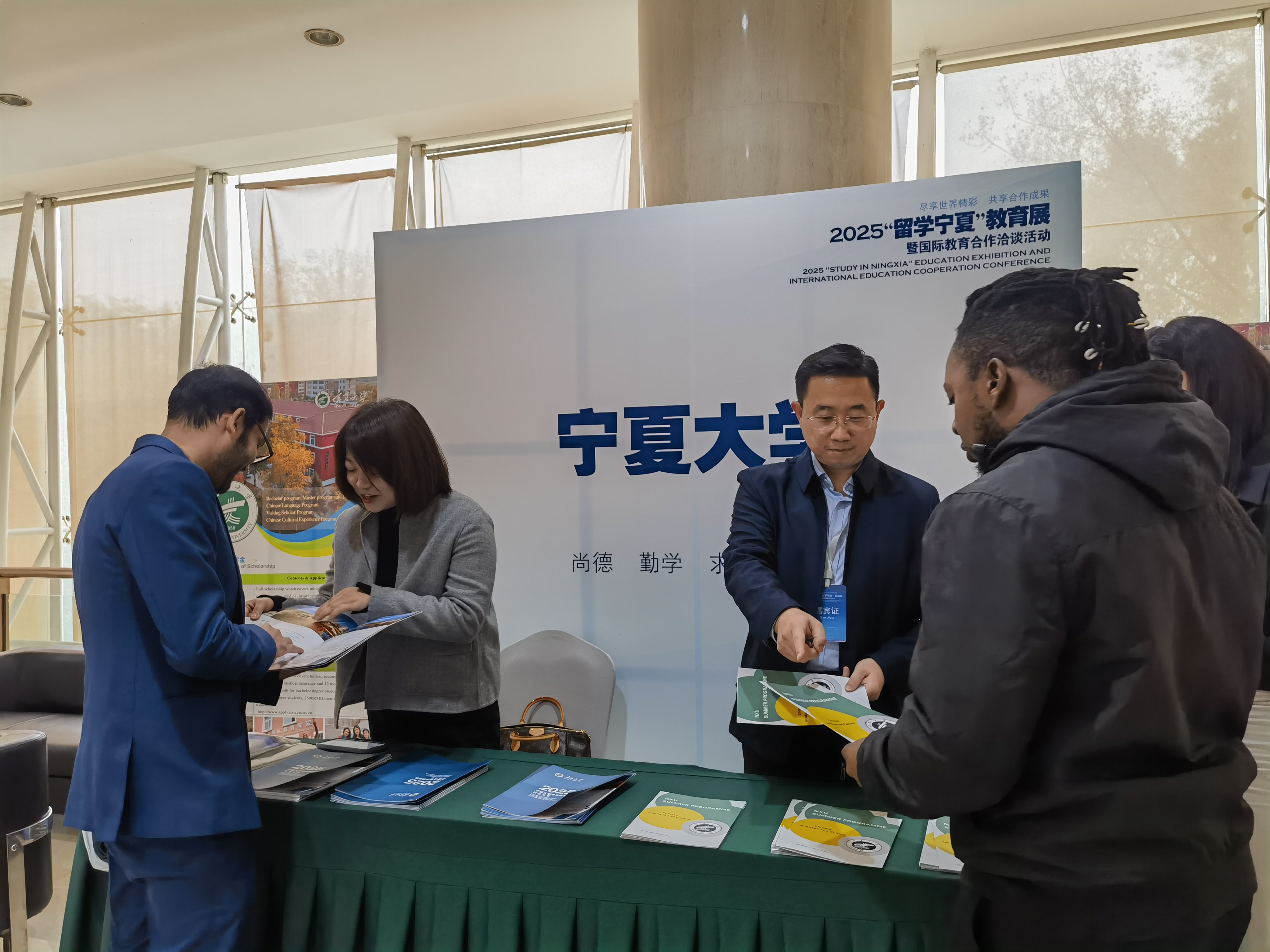 【宁夏大学新闻中心讯  国际教育学院】10月25日,由自治区教育厅主办、宁夏医科大学承办的2025"留学宁夏"教育展暨国际教育合作洽谈活动在银川举办。来自10多个国家的30多所海内外院校、教育机构代表,区内相关单位负责人及各校留学生代表齐聚一堂,共商国际合作。我校副校长赵晓佳带领对外合作交流处、国际教育学院参加此次展会活动,全面展示学校国际化办学成果,积极拓展国际合作渠道。