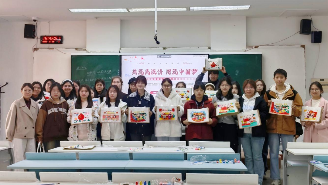 随后进行的涂色创作环节中,同学们在印有民族团结主题图案的托特包上自由发挥,调配色彩、填充图案,在轻松愉快的氛围中交流协作,现场洋溢着温暖与活力。活动最后,大家手持各自完成的作品合影留念。一件件色彩缤纷的托特包,不仅是同学们创意的展现,也成为民族团结美好寓意的生动表达。