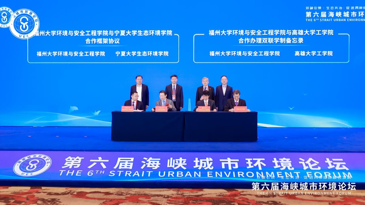 11月6日,在第六届海峡城市环境论坛期间,杨文法与台湾大学蒋本基教授、福州大学副校长张亚雷等嘉宾共同见证宁夏大学生态环境学院与福州大学环境与安全工程学院签订《合作框架协议(2026—2030)》。此次签约是两校落实闽宁协作精神、深化学院层面实质性合作的重要成果,将聚焦生态环境领域学科共建、科研协同及人才联合培养,为两校搭建更高层次合作平台。论坛期间,我校教师代表围绕“土壤及地下水污染修复”“新污染物协同治理”等议题参与学术交流,进一步扩大了学院学术影响力。