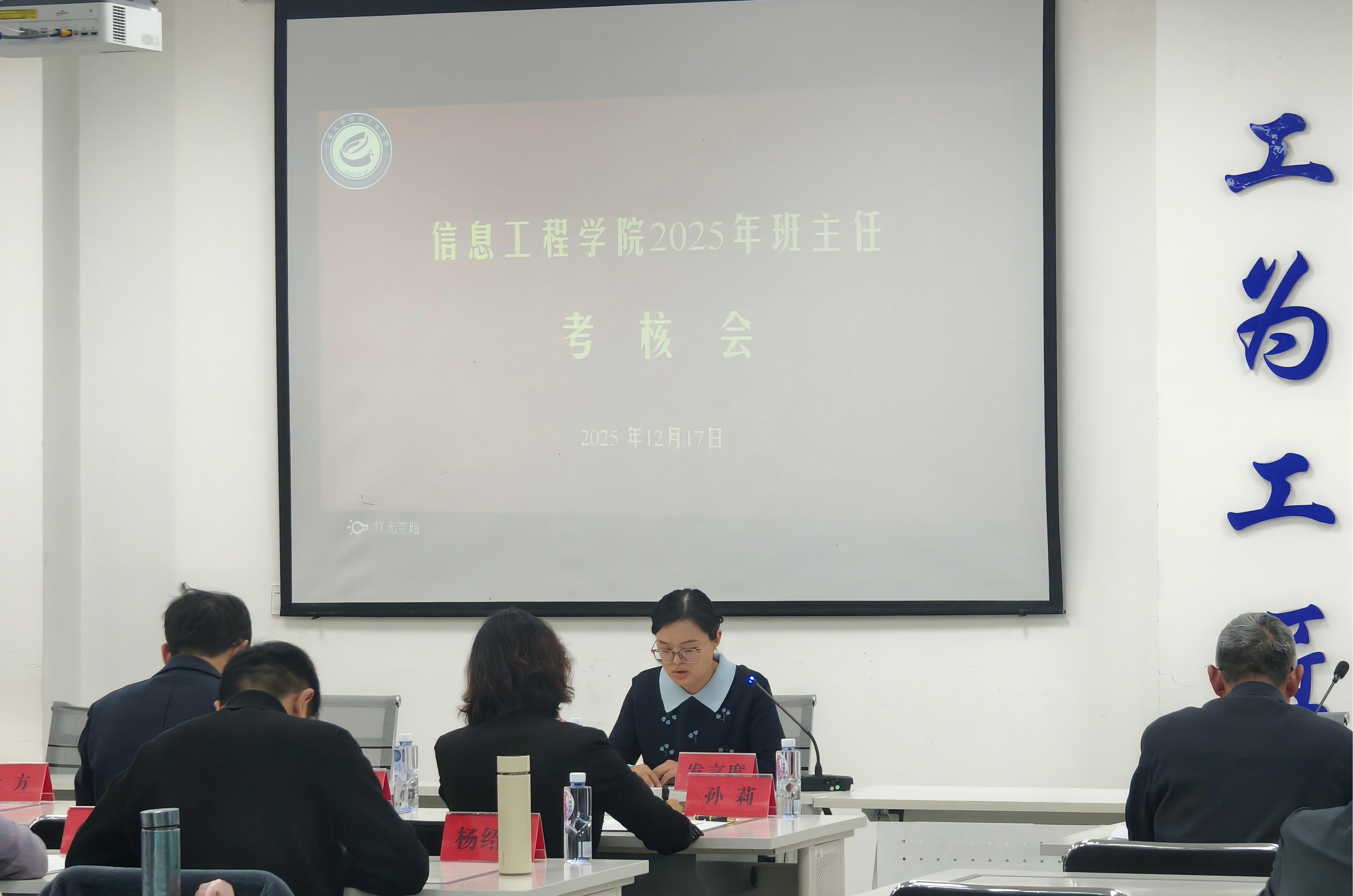 【宁夏大学新闻中心讯 信息工程学院】为深入落实立德树人根本任务,充分发挥班主任在“三全育人”中的关键作用,进一步规范班主任工作管理,提升班主任科学化规范化制度化水平,根据《宁夏大学班主任工作管理办法》要求,12月17日,信息工程学院召开了2025年班主任考核会。学院领导班子成员,求是书院副院长张振霞,辅导员玛伊拜尔、何洋、张晓老师以及全体本科生班主任、教师代表参加了会议。