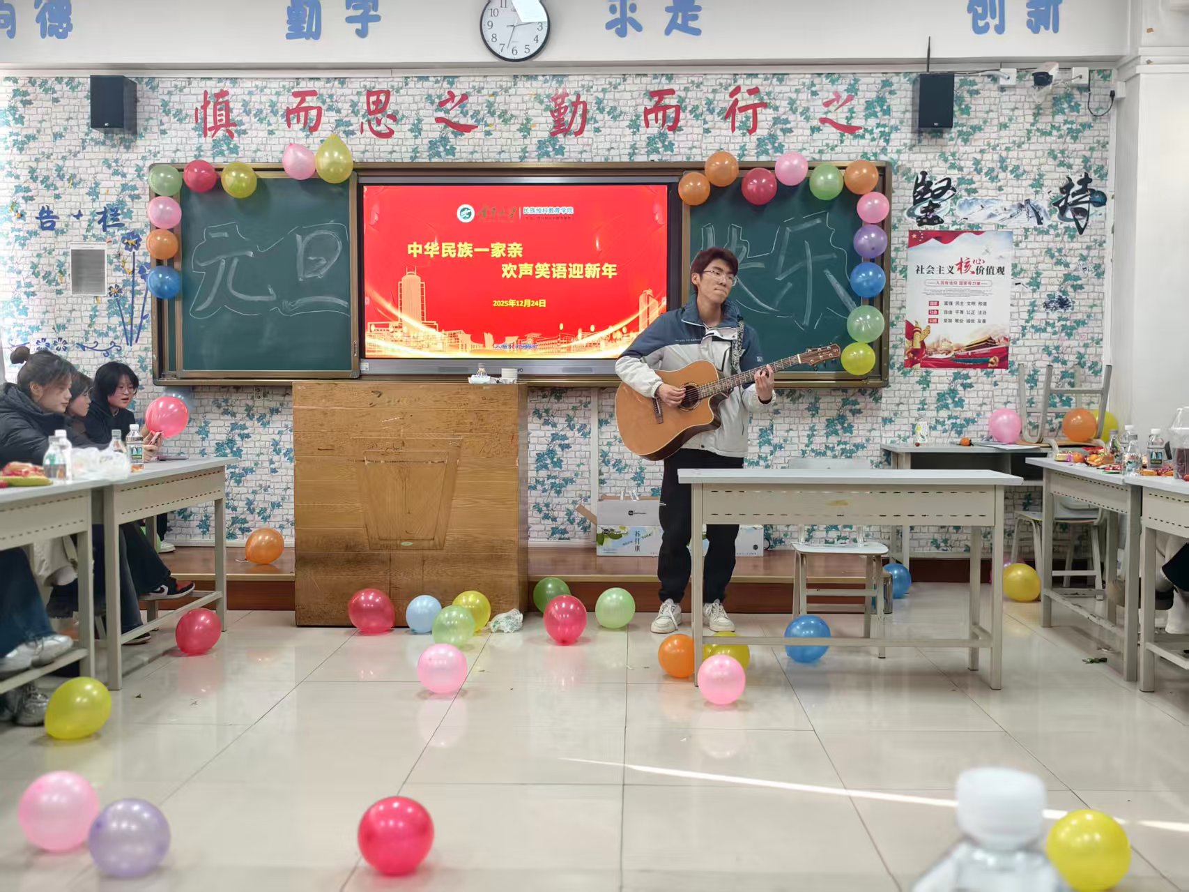 各班教室之中,彩球错落摇曳,墙壁上“元旦快乐”的字样明艳夺目,满室皆是欢乐气息。同学们精心筹备了一系列丰富的节目,有男女声独唱、民族舞蹈、情景剧、民族乐器演奏和温情满溢的集体合唱等韵味十足的文艺表演,每一项活动都如织锦之线,将各族学子的心紧密相牵。