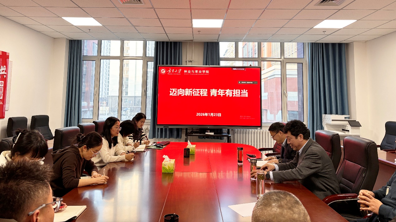 【宁夏大学新闻中心讯 林业与草业学院】为进一步搭建青年教师交流互动平台,助力青年教师快速适应教学科研岗位、稳步成长,持续凝聚学院团队合力,全面掌握近五年入职青年教师的成长现状与发展需求,1月23日,我院组织召开青年教师座谈会。学院领导班子成员、各系主任与近五年入职的青年教师参加了座谈会。会议由学院院长马红彬主持。