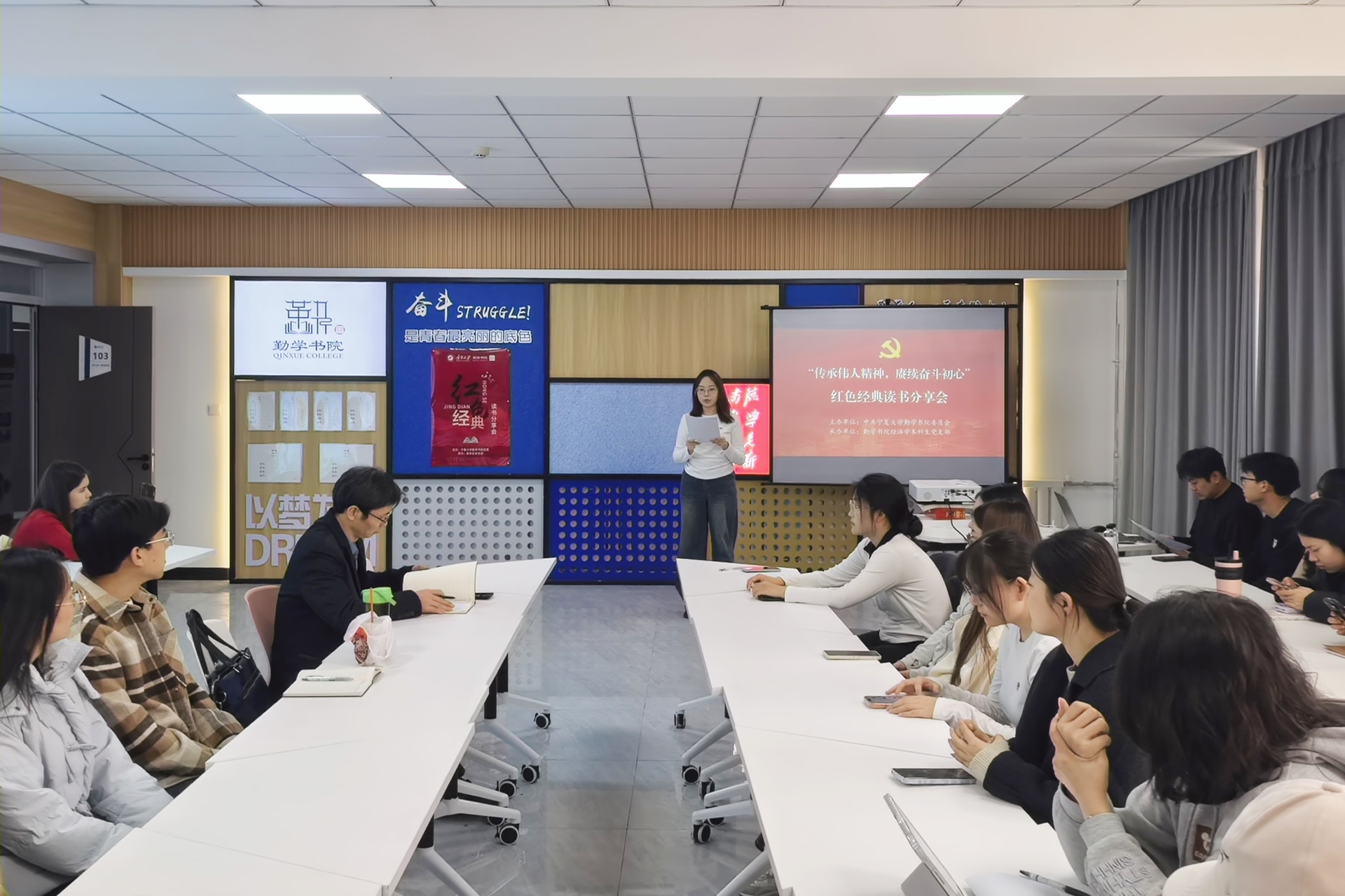 3月18日下午,经济学本科生党支部承办的红色经典读书分享会第一期“传承伟人精神,赓续奋斗初心”在勤学书院101室举行。书院学生党员、预备党员、发展对象及入党积极分子代表参加活动。