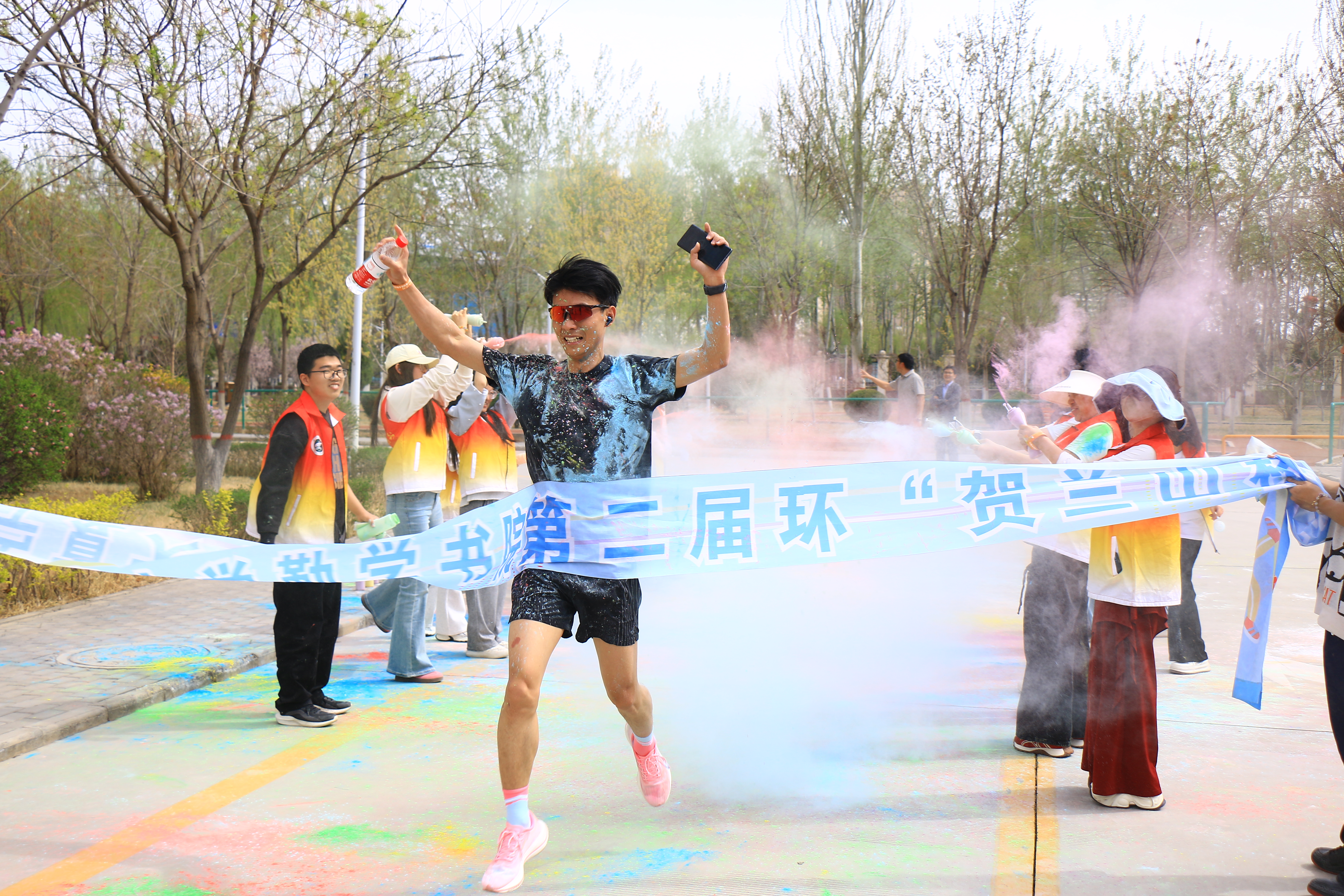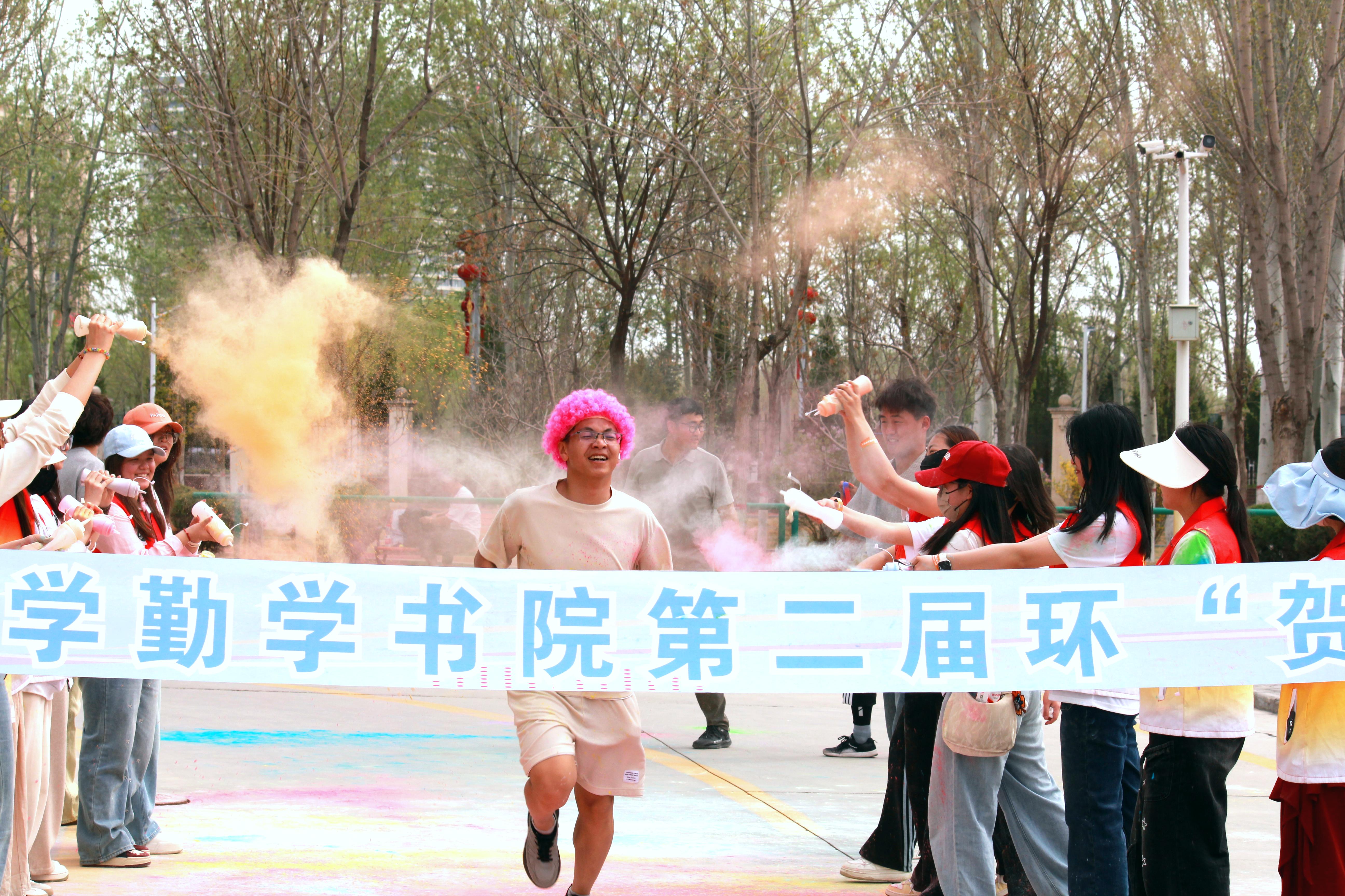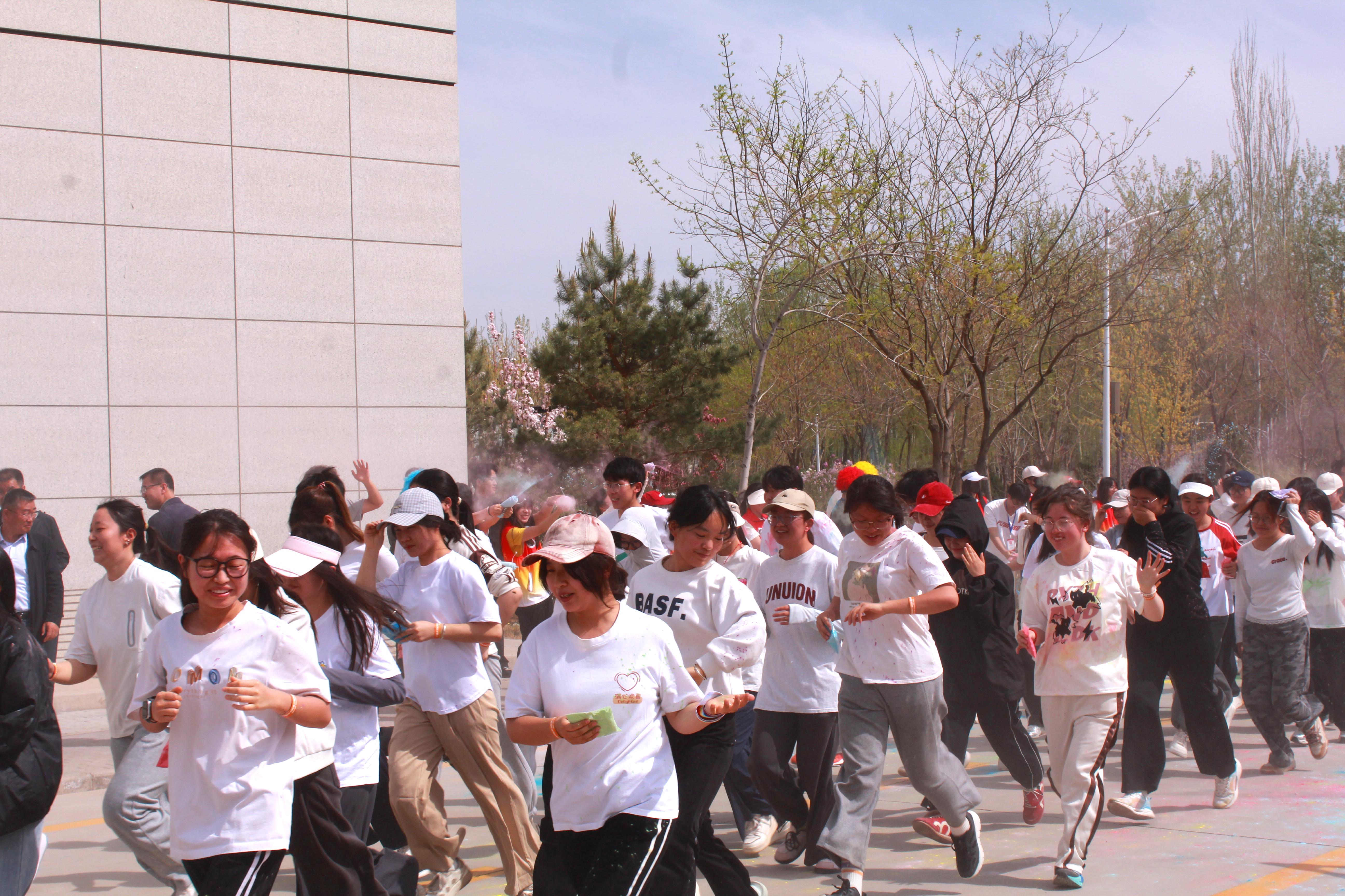 随着发令枪声响起,欢乐跑正式开启。参赛选手们步伐矫健,沿赛道奋力向前,用脚步丈量校园春色,用奔跑释放青春能量。赛道沿途设置的彩虹粉趣味站点成为全场亮点,缤纷彩粉漫天飞舞,红黄蓝绿交织出绚丽色彩,与同学们灿烂的笑容、挥洒的汗水交相辉映,绘就出一幅活力四射的校园青春画卷。