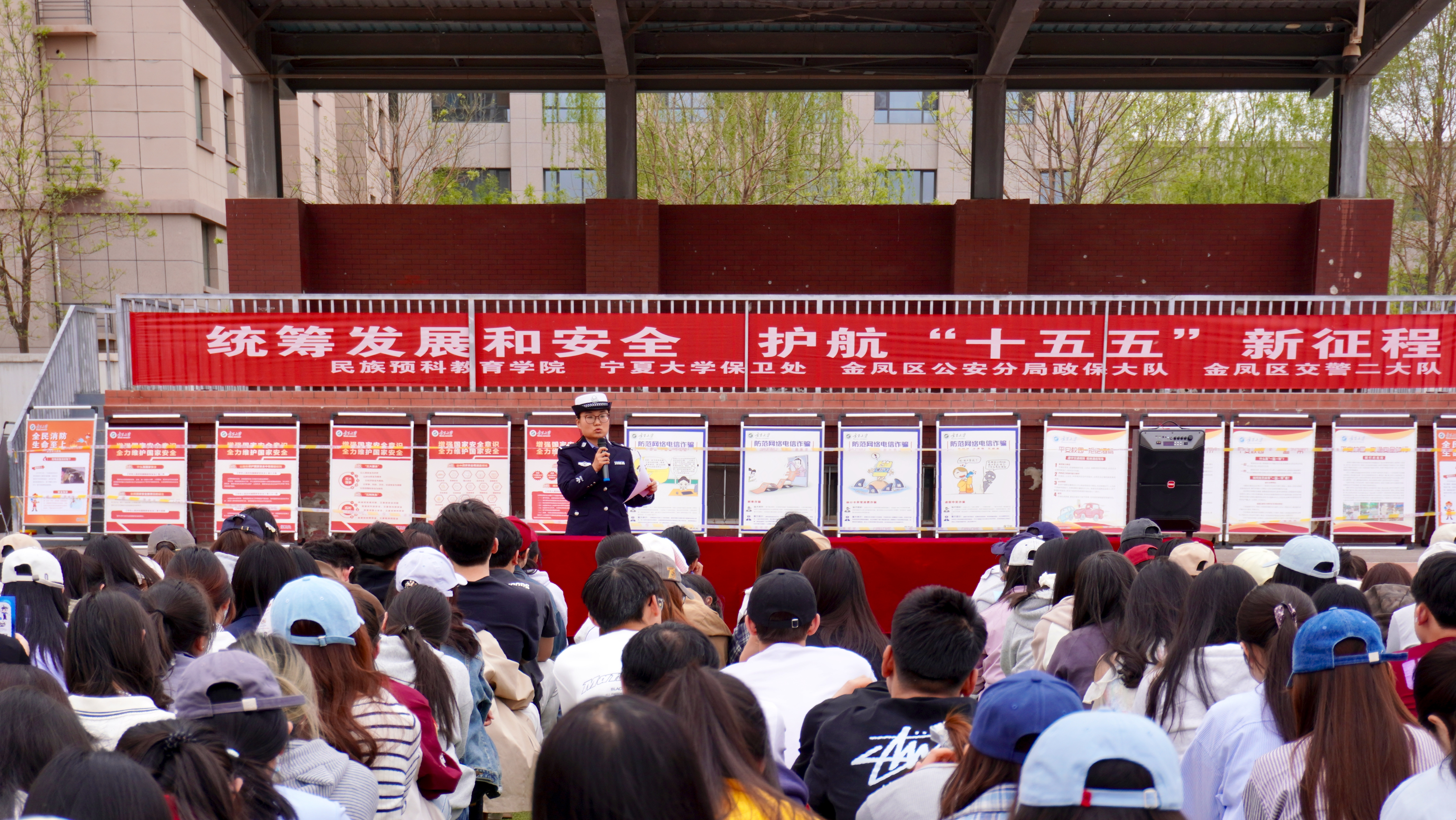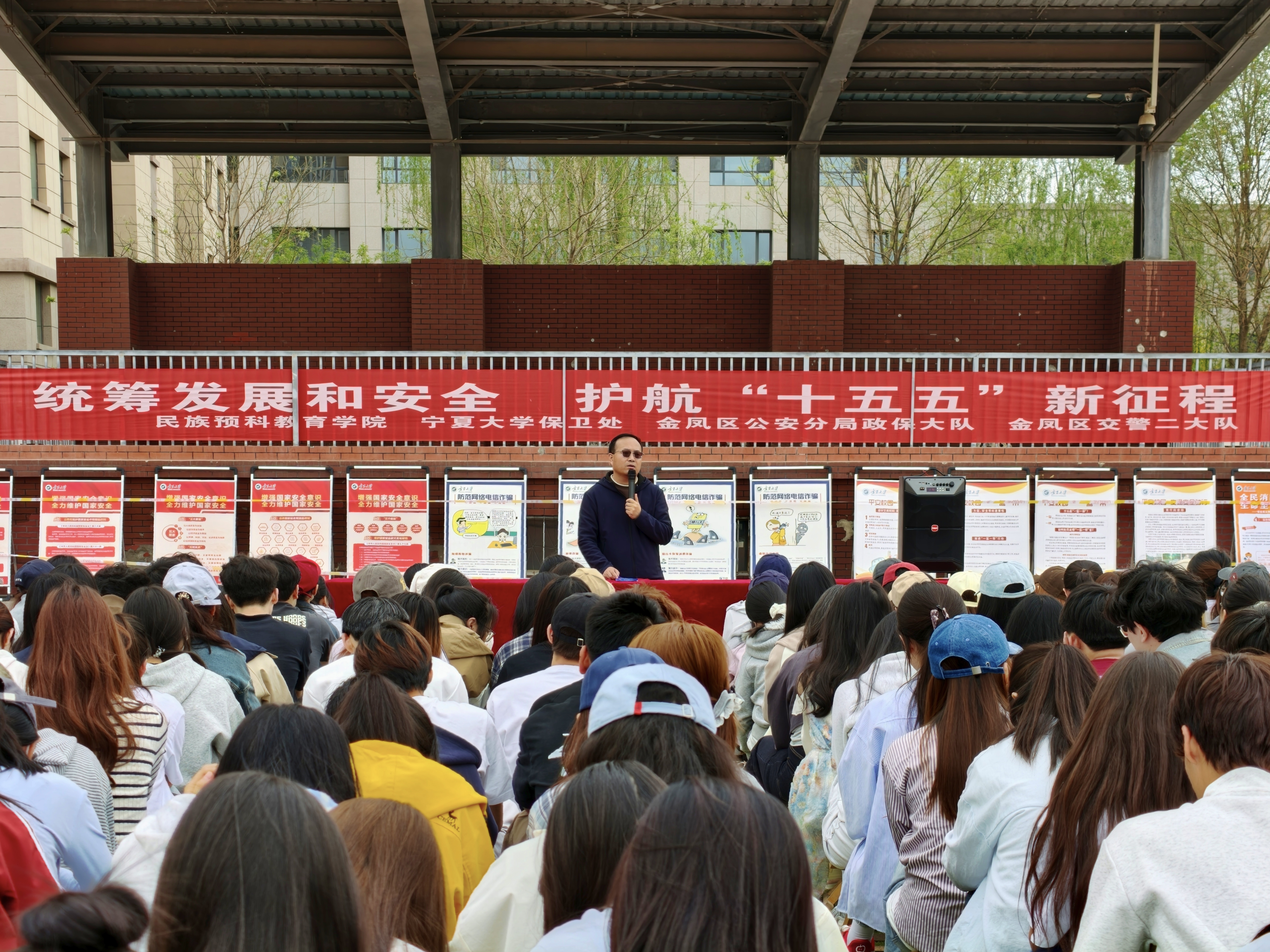 【宁夏大学新闻中心讯 民族预科教育学院】为深入贯彻总体国家安全观,切实增强高校师生国家安全意识、 法治观念和抵御防范邪教能力,筑牢校园安全防线,4月15日下午,民族预科教育学院联合校保卫处、金凤区公安分局政保大队、金凤区交警二大队举办“统筹发展和安全,护航“十五五”新征程”主题活动。本次活动由学院辅导员吕乐主持,学院全体学生参加。