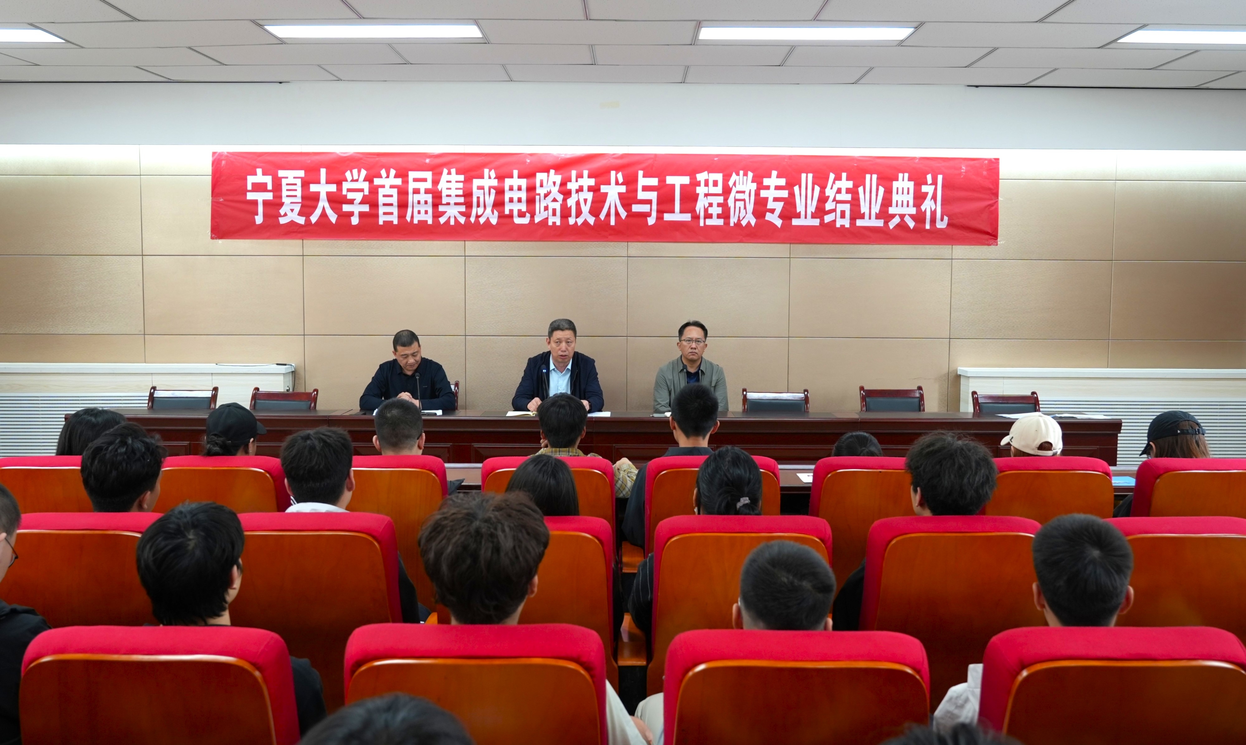 【宁夏大学新闻中心讯 电子与电气工程学院】4月15日,电子与电气工程学院首届集成电路技术与工程微专业结业典礼在怀远校区德言楼报告厅举行。学院党总支书记何彦平、副院长郭中华、班主任杨向红、授课教师代表及全体结业学生参加典礼。典礼由副院长李春树主持。