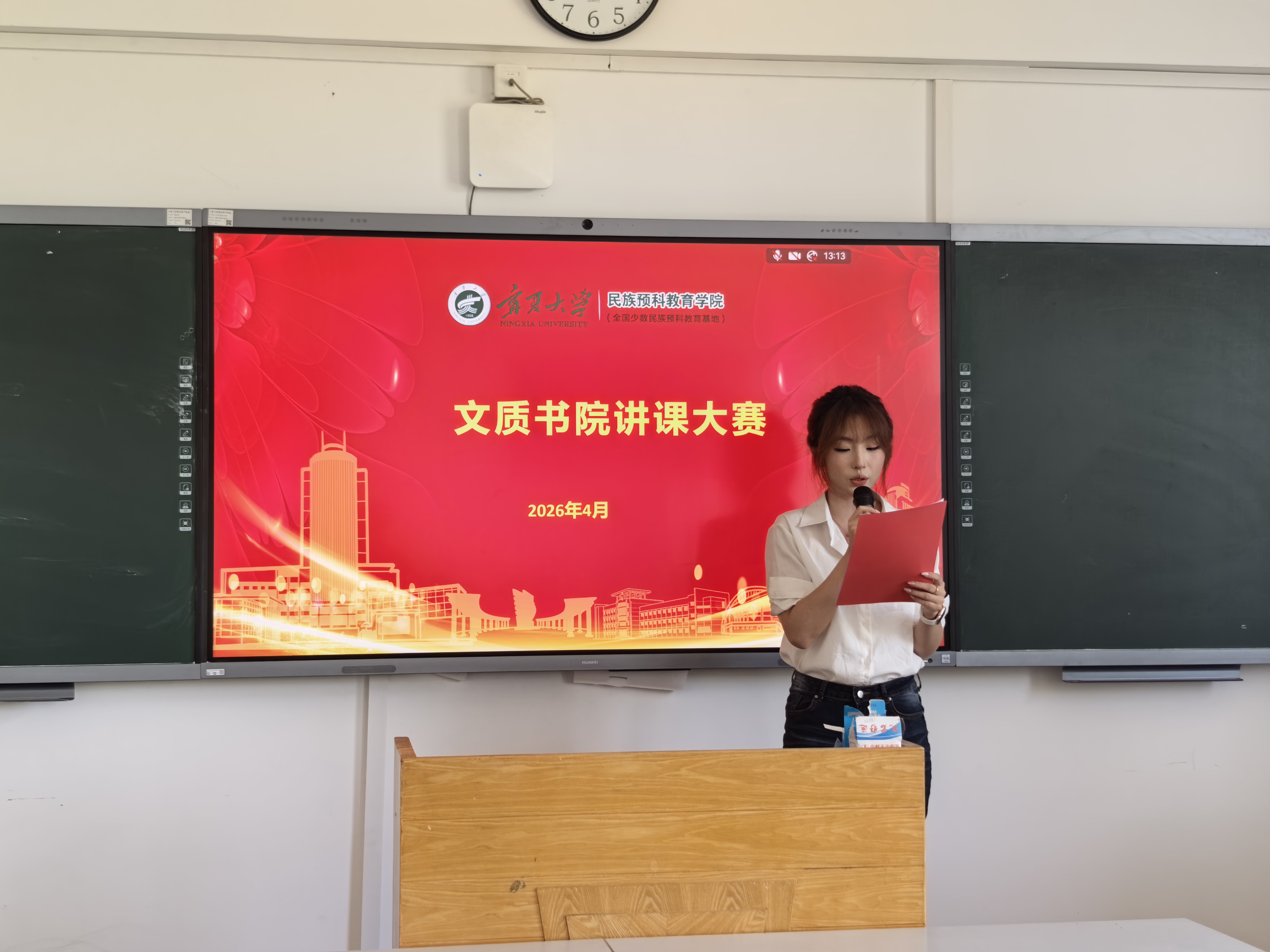 【宁夏大学新闻中心讯 民族预科教育学院】为丰富校园文化生活,从预科阶段提高师范院校委培生的实践创新能力,强化学生教学技能,为学生提供一个学以致用的交流平台,4月29日下午,民族预科教育学院于田家炳教学楼307教室开展文质书院讲课大赛。