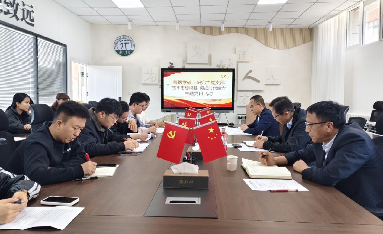 【宁夏大学新闻中心讯 励行书院】为强化理论武装、严明政治纪律、凝聚奋进力量,4月29日,励行书院兽医学硕士研究生党支部开展“筑牢思想根基 勇担时代使命”主题党日活动。校党委常委、副校长车进,励行书院党委书记、院长张强出席活动,支部全体党员参加,活动由党支部书记马生忠主持。