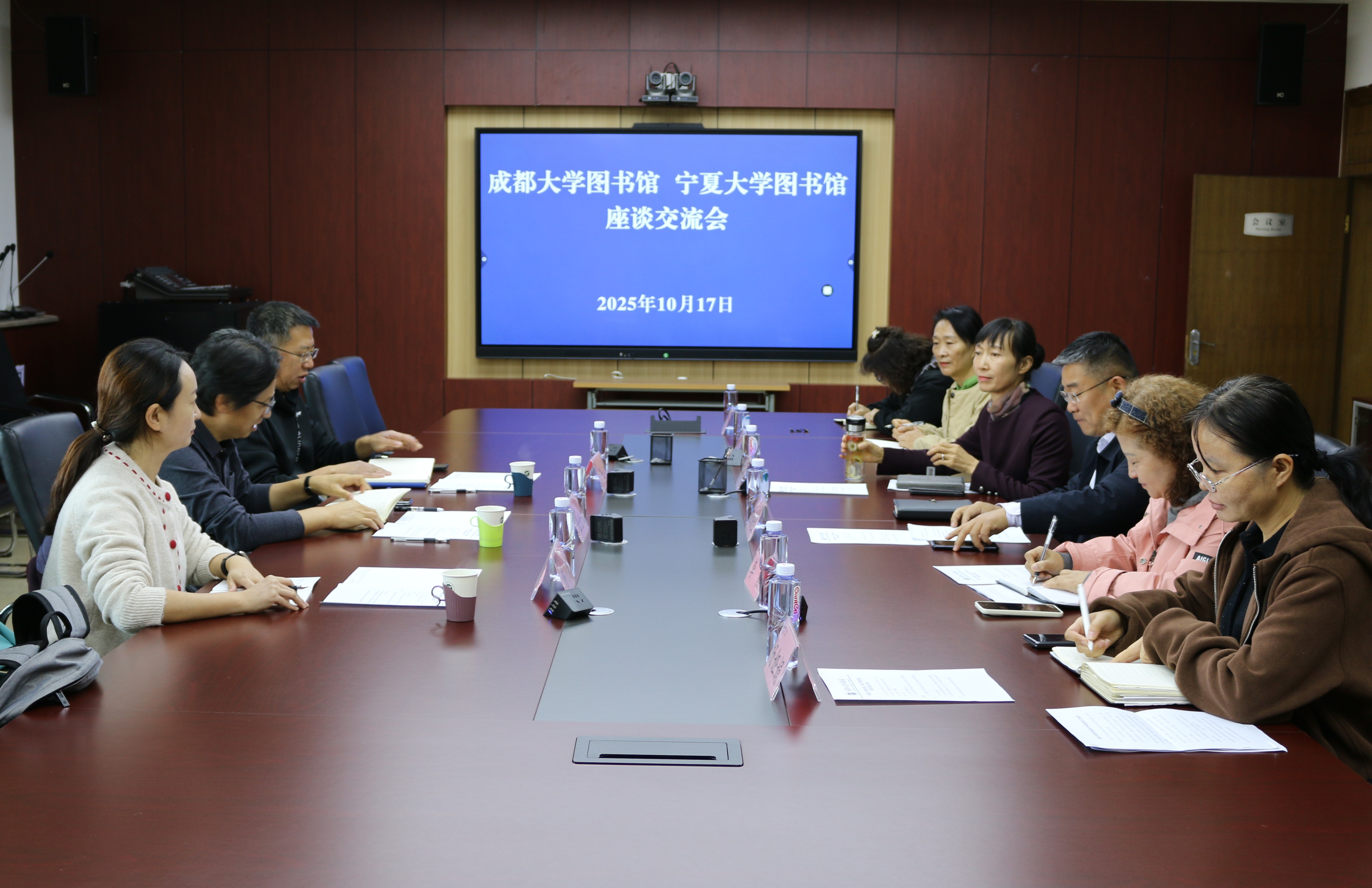 【宁夏大学新闻中心讯 图书馆】10月17日,成都大学图书馆与我校图书馆座谈交流会在逸夫图书馆三楼会议室举行,两馆相关负责人围绕图书馆资源建设、学科服务及资源共享等议题进行了深入交流与探讨。会上,两校图书馆负责人分别介绍了图书馆的发展历程与基本情况,分享了具有代表性的经验做法并提出了发展面临的困难。座谈会上,双方就学科资源支持情况,文献资源采购、重点学科资金分配及特色数据库建设,学科分析、信息素养教育...