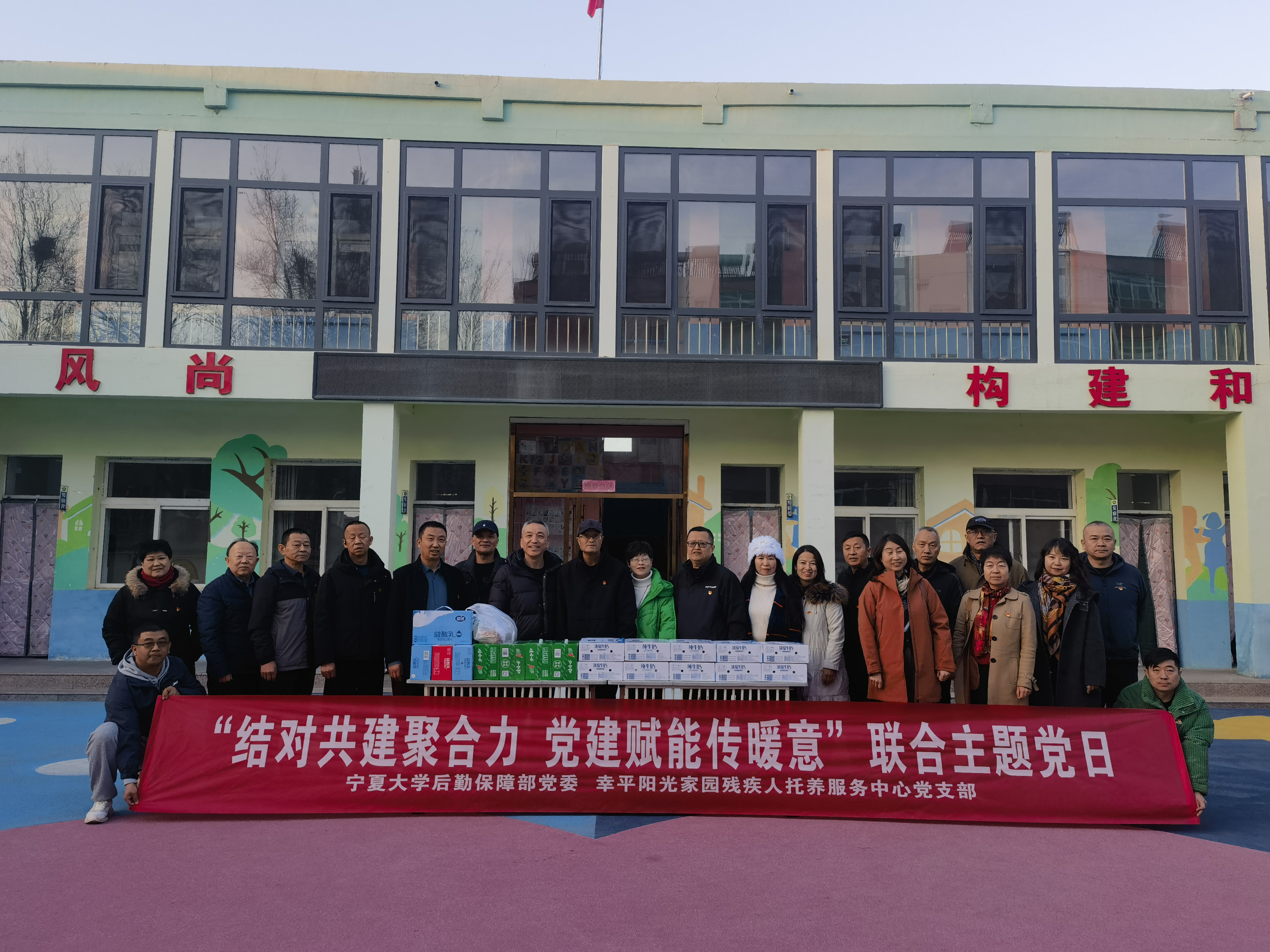 【宁夏大学新闻中心讯 后勤保障部】11月21日,宁夏大学后勤保障部20余人赴西夏区幸平阳光家园残疾人托养服务中心,开展“结对共建聚合力,党建赋能传暖意”联合主题党日活动,活动依托学校挂职宁夏回族自治区残疾人联合会干部搭建的沟通桥梁,是后勤保障部党委“沿着干部挂职路,感受宁夏发展加速度”系列活动的具体实践。参观结束后,后勤保障部党委班子向托养中心赠送食品、生活用品等爱心物资,向一线工作人员致以敬意,向残疾人群体表达深切关怀。此次主题党日活动既是一次生动的社会实践,也是党建引领履行社会责任的新起点。(编辑:李明花