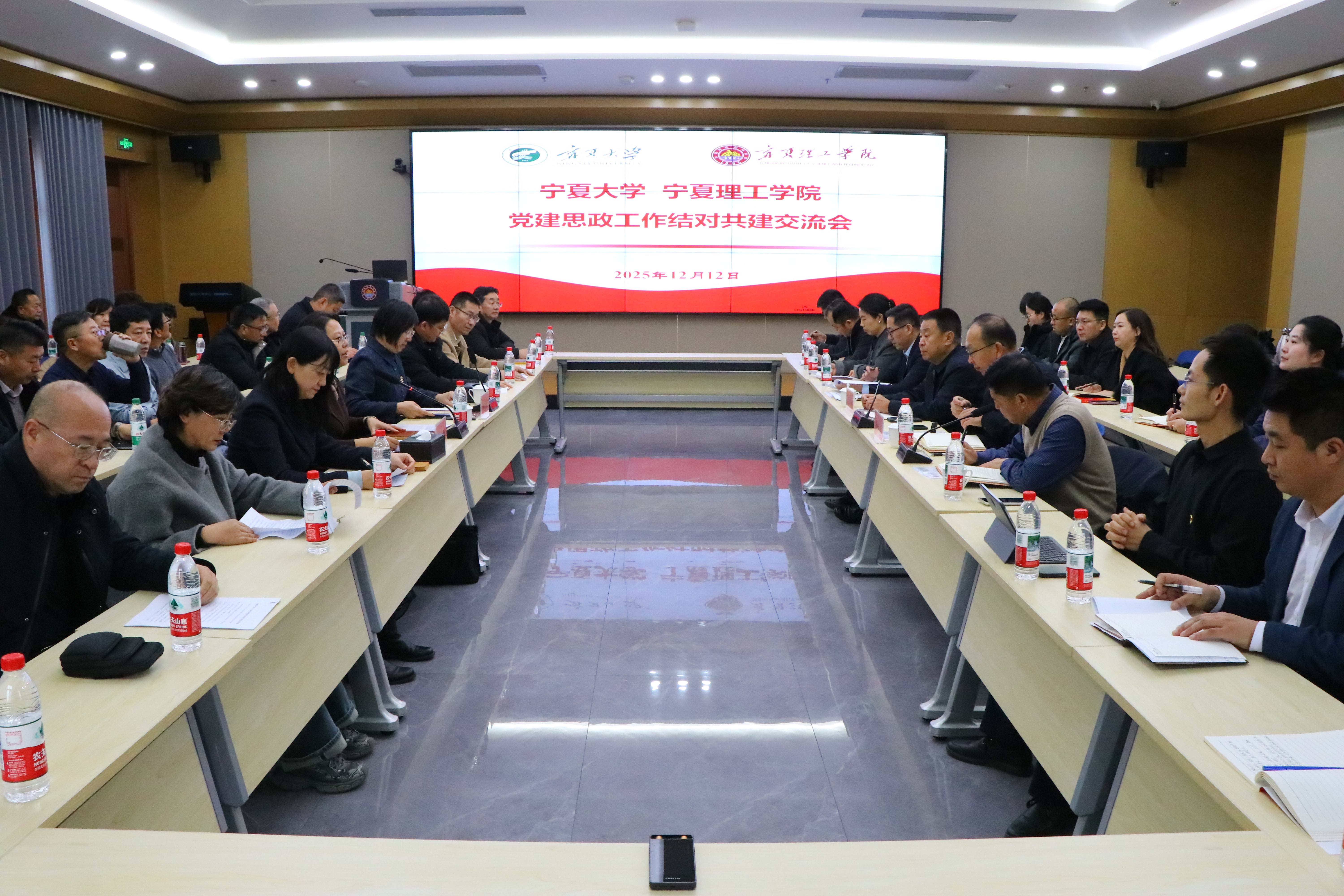 【宁夏大学新闻中心讯 冯禹君/文、图】12月12日,宁夏大学与宁夏理工学院党建思政工作结对共建交流暨宁夏大学党组织书记月度理论学习交流会在宁夏理工学院举行。校党委副书记韩惠丽、宁夏理工学院党委书记张鲁生出席会议。校党委常委、组织部部长张永丽主持会议。韩惠丽一行来到宁夏理工学院计算机学院、外国语学院“一站式”学生服务中心,在讲解员的引导下实地了解“一站式”学生社区的管理理念、工作体系、育人空间和功能布局,还沉浸式参观了宁夏理工学院“未来学习中心”图书馆。交流会上,我校外国语学院党总支书记朱海燕、宁夏理工学院理化学院党总支书记韩宝分别领学了党的二十届四中全会精神、自治区党委十三届十一次全会精神。我校尚德书院党委书记潘瑞、机械工程学院党总支书记杨术明、葡萄酒与园艺学院党总支书记苏宇静,宁夏理工学院计算机学院党总支副书记杜兴鹏、文学艺术学院党总支书记钱伟结合学习党的二十届四中全会精神、自治区党委十三...