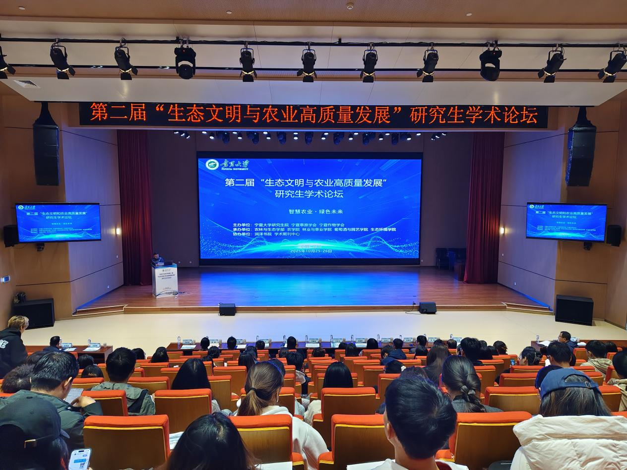 【宁夏大学新闻中心讯 农林与生态学部】10月25日至26日,由宁夏大学、宁夏草原学会、宁夏作物学会联合主办,农林与生态学部、农学院、林业与草业学院承办,润泽书院、学术期刊中心协办的第二届“生态文明与农业高质量发展”研究生学术论坛在我校举办。本次论坛特邀来自西南科技大学、吉林农业大学、华中农业大学、华南农业大学、甘肃农业大学、南京农业大学、西北农林科技大学7名国内知名专家作大会报告。来自全国18所高校及科研院所的250余名研究生参加了论坛。我校农林与生态学部、研究生院、宁夏草原学会及各学院领导班子成员、相关导师出席了开幕式。开幕式由农林与生态学部常务副部长马红彬主持。农林与生态学部部长李建设在开幕式上致辞。他指出,研究生学术论坛作为多元化交流平台,不仅展示研究生的研究成果,促进思想交流,提升学术能力,更是增强学校学术影响力的重要窗口。并勉励青年学子要紧紧围绕国家战略,勇于创新,积极探索,用优秀的学术成...