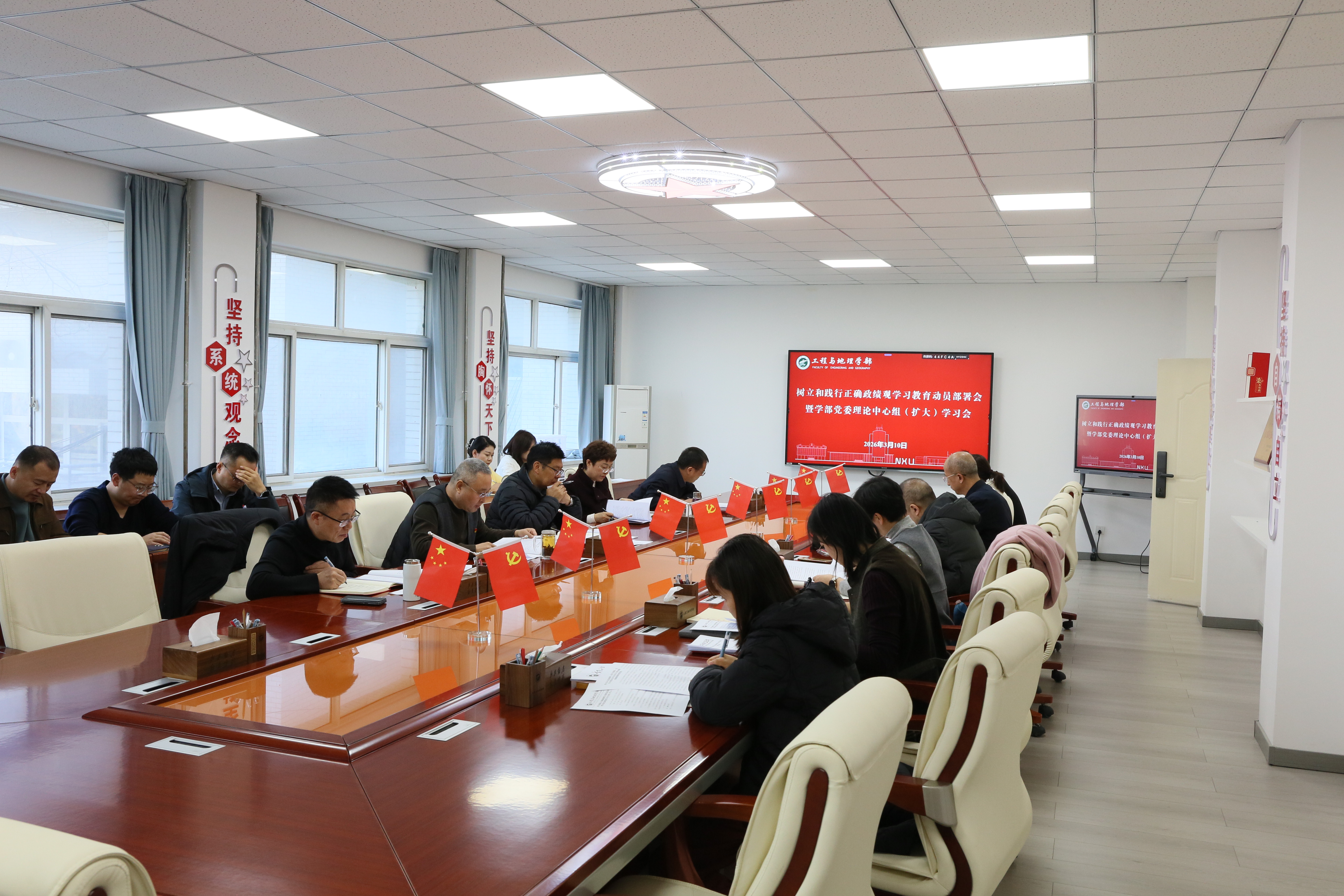 【宁夏大学新闻中心讯 工程与地理学部】为深入学习贯彻党中央关于在全党开展树立和践行正确政绩观学习教育的决策部署,全面落实自治区党委、校党委工作要求,3月10日,工程与地理学部召开树立和践行正确政绩观学习教育动员部署会。会议由学部党委书记陈晓敏主持,学部、学院副处级以上领导干部、党支部书记、学部全体党员参加了会议。会上,集中传达学习了中共中央办公厅《关于在全党开展树立和践行正确政绩观学习教育的通知》精神、中央党的建设工作领导小组第二十次会议精神、自治区党委党的建设领导小组(扩大)会议精神,同时深入学习了学校党的建设工作领导小组(扩大)会议部署树立和践行正确政绩观学习教育工作会议精神。会议强调,各学部、学院要深刻认识开展树立和践行正确政绩观学习教育的重大意义,切实把思想和行动统一到党中央决策部署上来,全面落实立党为公、为民造福、科学决策、真抓实干总要求,在深学、细查、实改上持续用力、务求实效。...